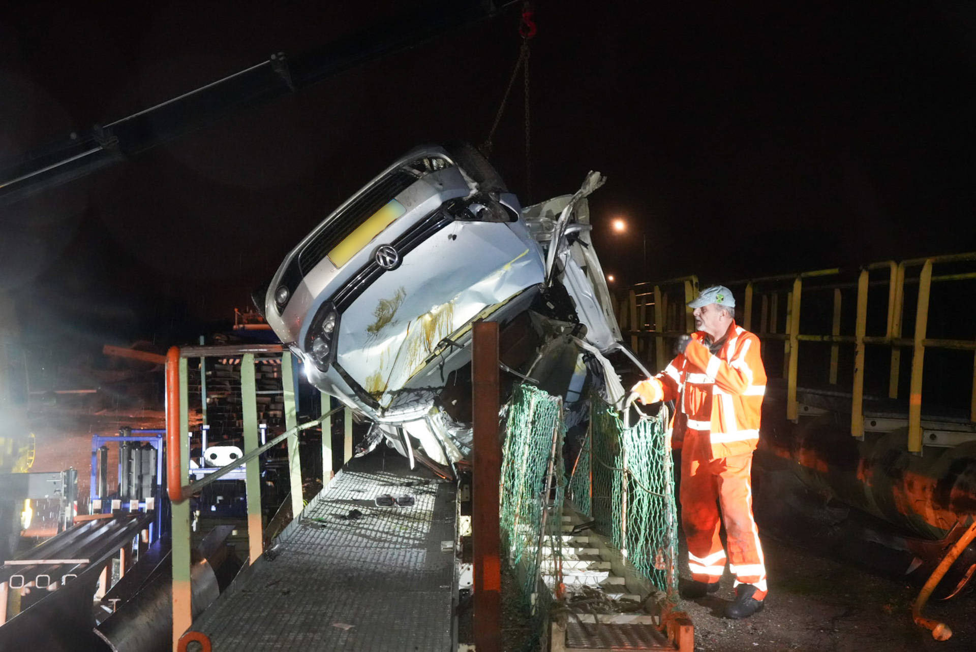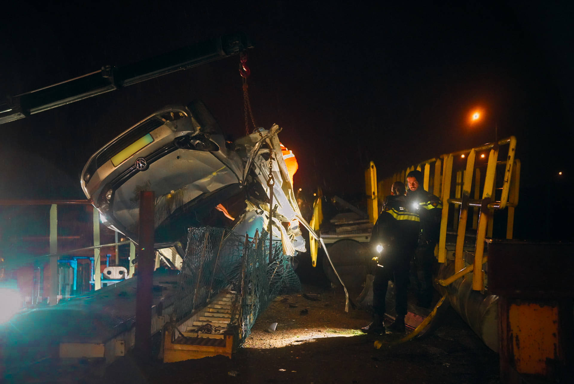 Het incident vond plaats rond tien minuten over twaalf. In een bocht reed de auto rechtdoor, raakte van de weg en werd via een talud gelanceerd. Het voertuig vloog vervolgens over een hek van een naastgelegen bedrijfsterrein en kwam terecht op metalen loopbruggen die normaal dienen als toegang tot aangemeerde schepen. De auto gleed over de bruggen en botste na circa 130 meter tegen het einde van de constructie.