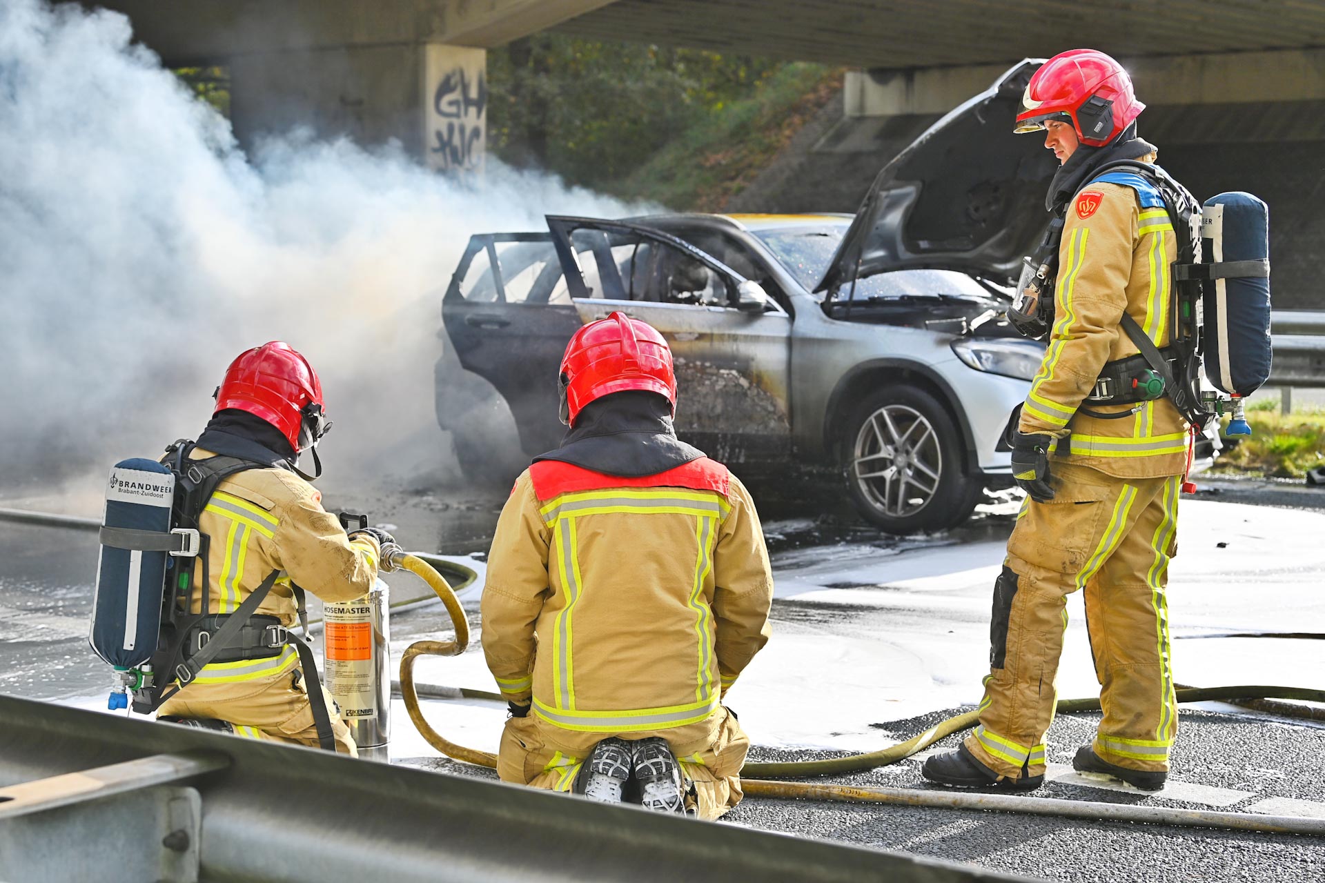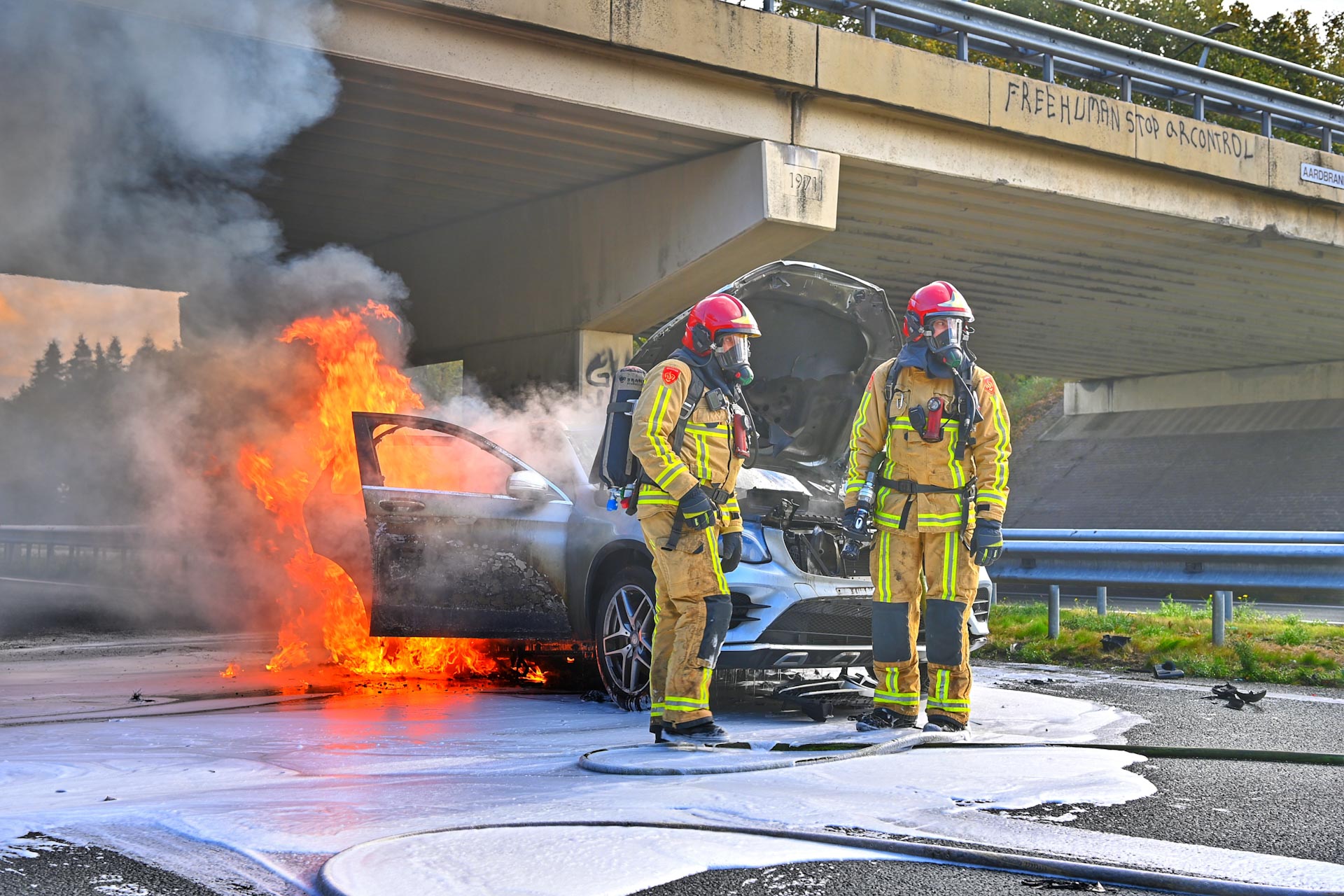 Auto vliegt in brand bij groot ongeluk, snelweg helemaal dicht