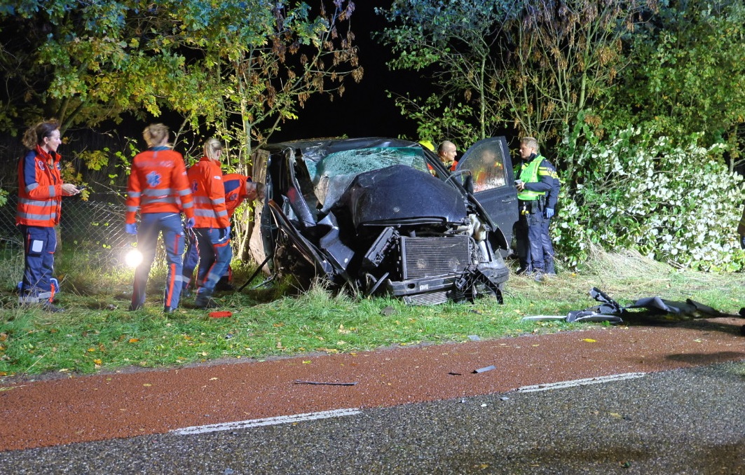 De bestuurder is met spoed per ambulance naar het ziekenhuis vervoerd, onder begeleiding van een trauma-arts.