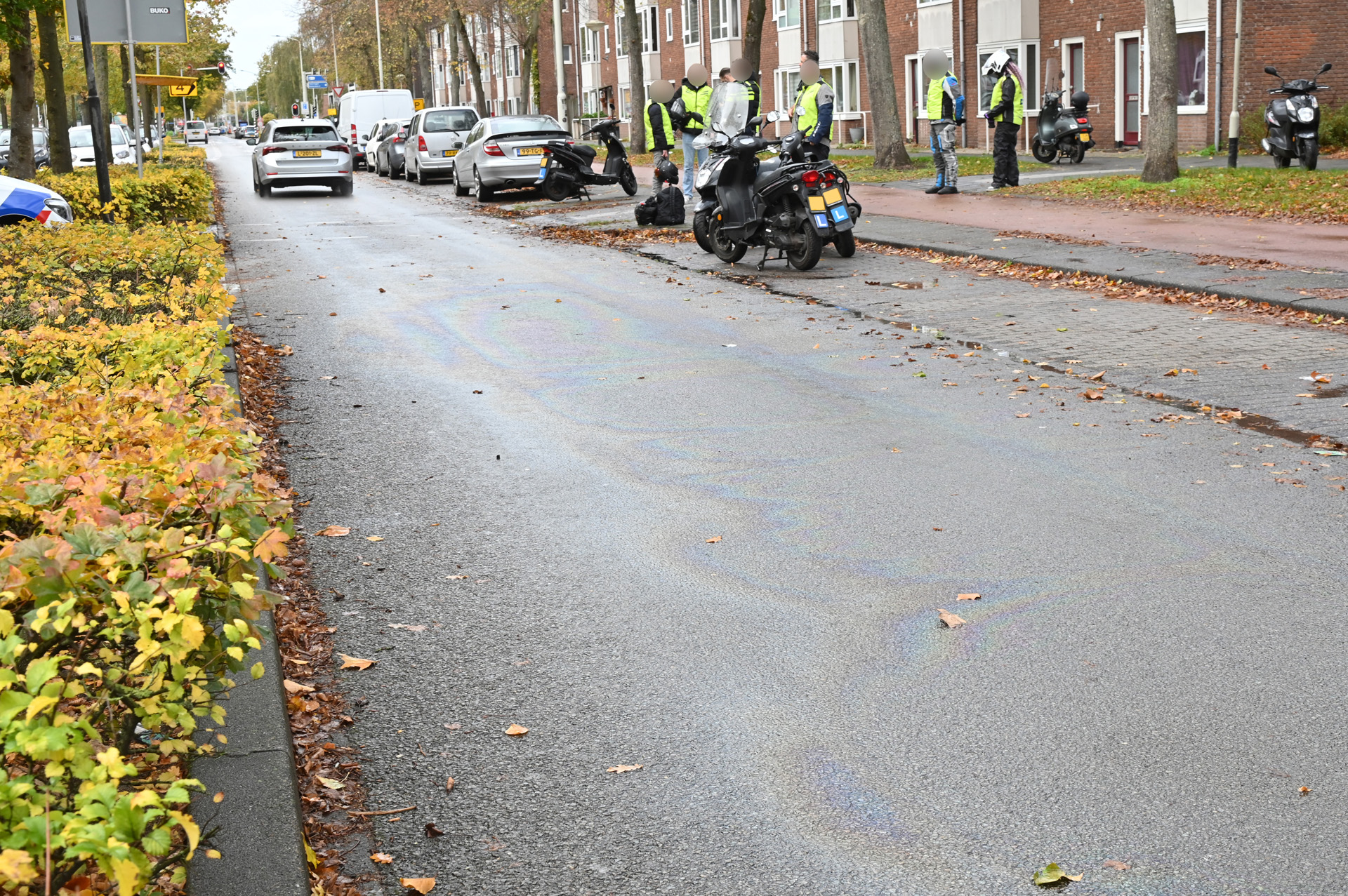 Geplaatst op 28 oktober 2025, om 13:45 uurBREDA – Op dinsdagochtend zijn een leerling en een lesinstructeur ten val gekomen met hun scooters op de St. Ignatiusstraat in Breda. De valpartij werd veroorzaakt door een oliespoor op het wegdek.
