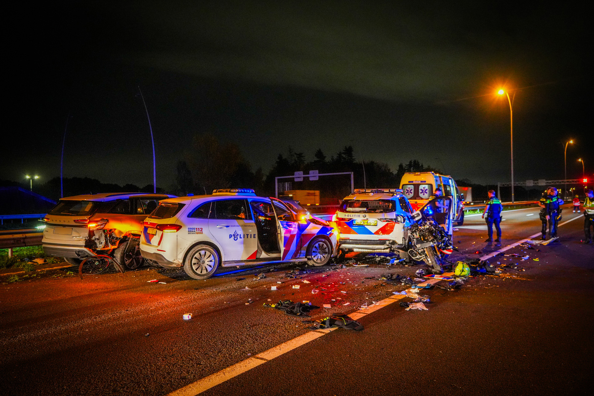 Geplaatst op 29 oktober 2025, om 20:50 uurEINDHOVEN – Op de A2 ter hoogte van knooppunt Batadorp zijn woensdagavond twee motoragenten zwaargewond geraakt bij een aanrijding veroorzaakt door een autodief. De gewonde agenten verkeren buiten levensgevaar. De verdachte is na het incident gevlucht, waarna een zoektocht is gestart naar de bestuurder van de gestolen auto. De snelweg richting Den Bosch is afgesloten vanwege de ernstige ravage.