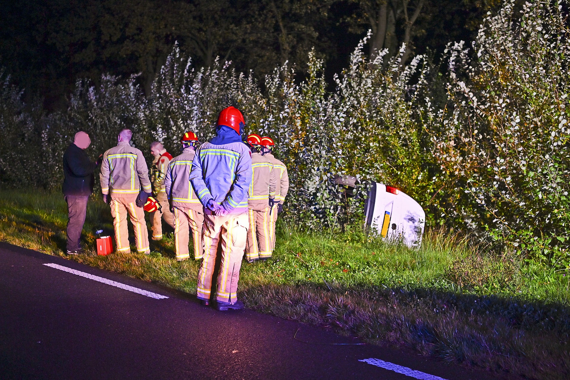 Het incident gebeurde rond 03.45 uur. De bestuurder kon zelfstandig uit het voertuig komen en bleef ongedeerd. Voorbijgangers uit Veldhoven troffen de man aan en waarschuwden de hulpdiensten. Brandweer en ambulance kwamen ter plaatse, evenals een bergingsvoertuig om de auto af te voeren.