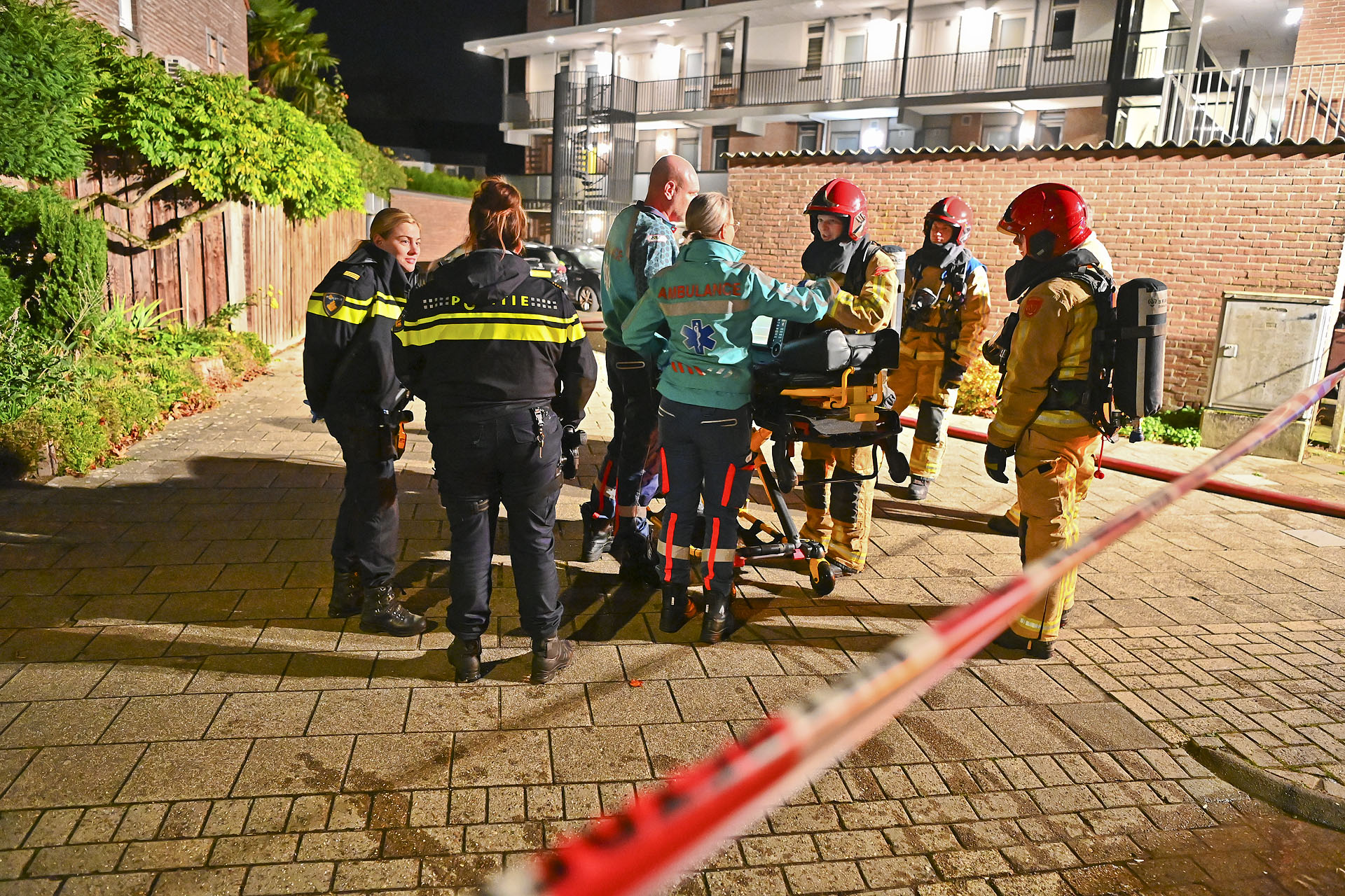 De vrouw is per ambulance overgebracht naar het ziekenhuis. Nadat de situatie veilig was verklaard, konden de bewoners terugkeren naar hun woningen.