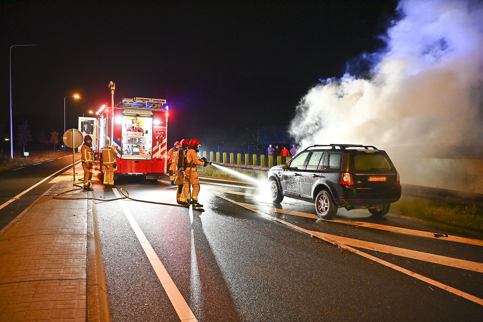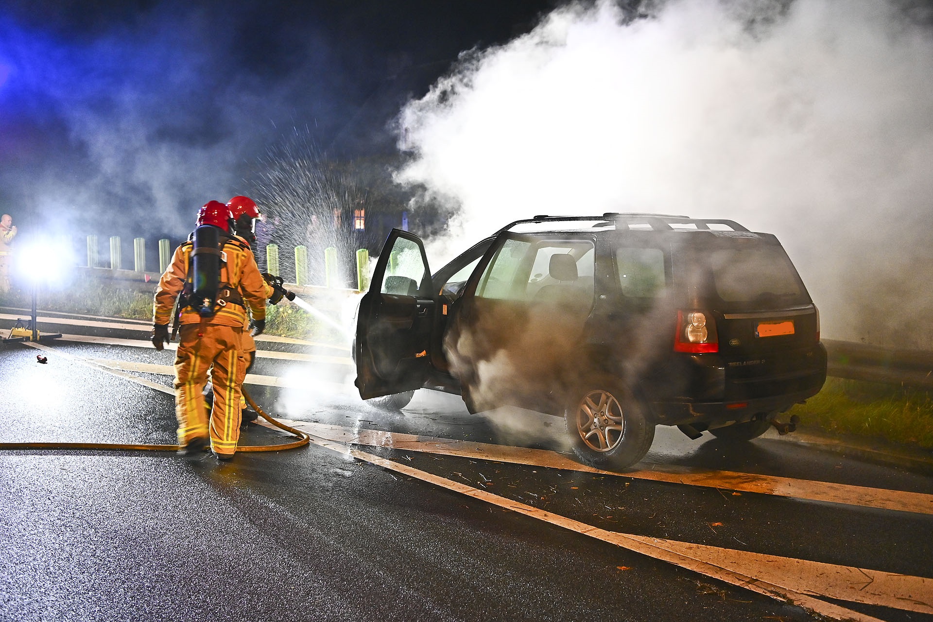 Auto vliegt in brand, persfotograaf belaagd