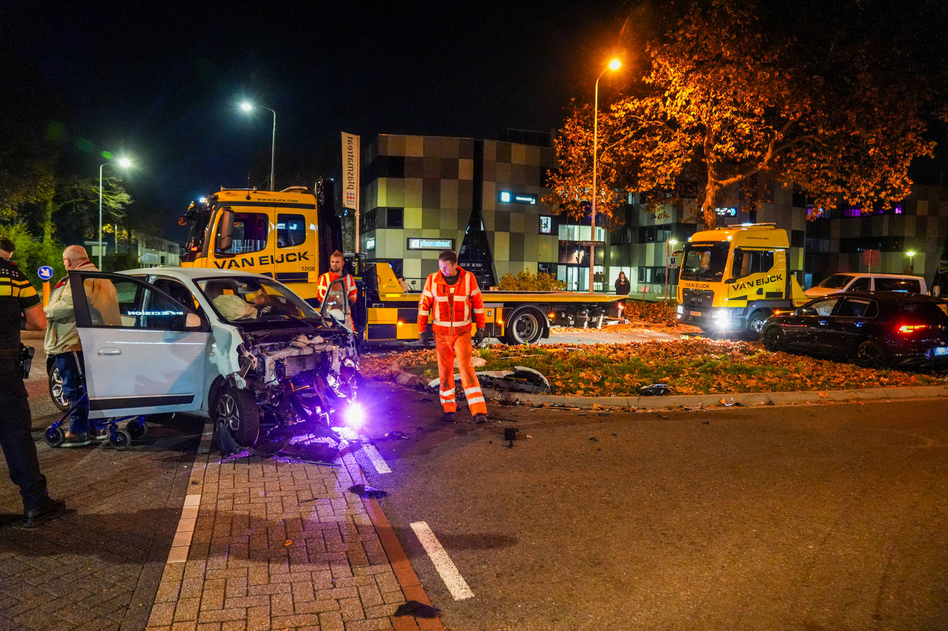 Het ongeval ontstond nadat één van de voertuigen geen voorrang verleende. Een witte auto kon een botsing niet meer voorkomen, wat leidde tot aanzienlijke schade aan beide voertuigen. Meerdere personen zijn ter plaatse nagekeken door ambulancepersoneel.