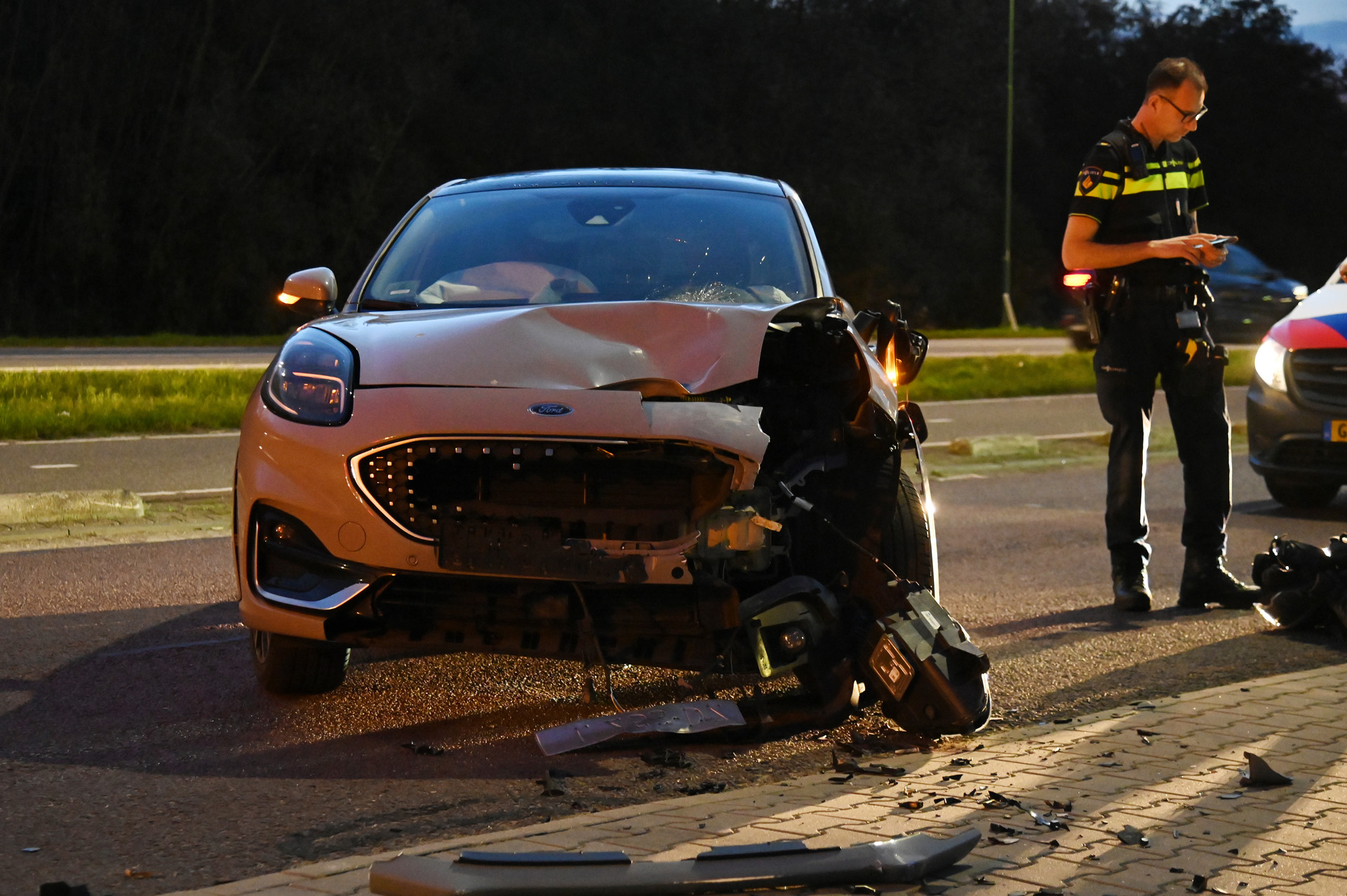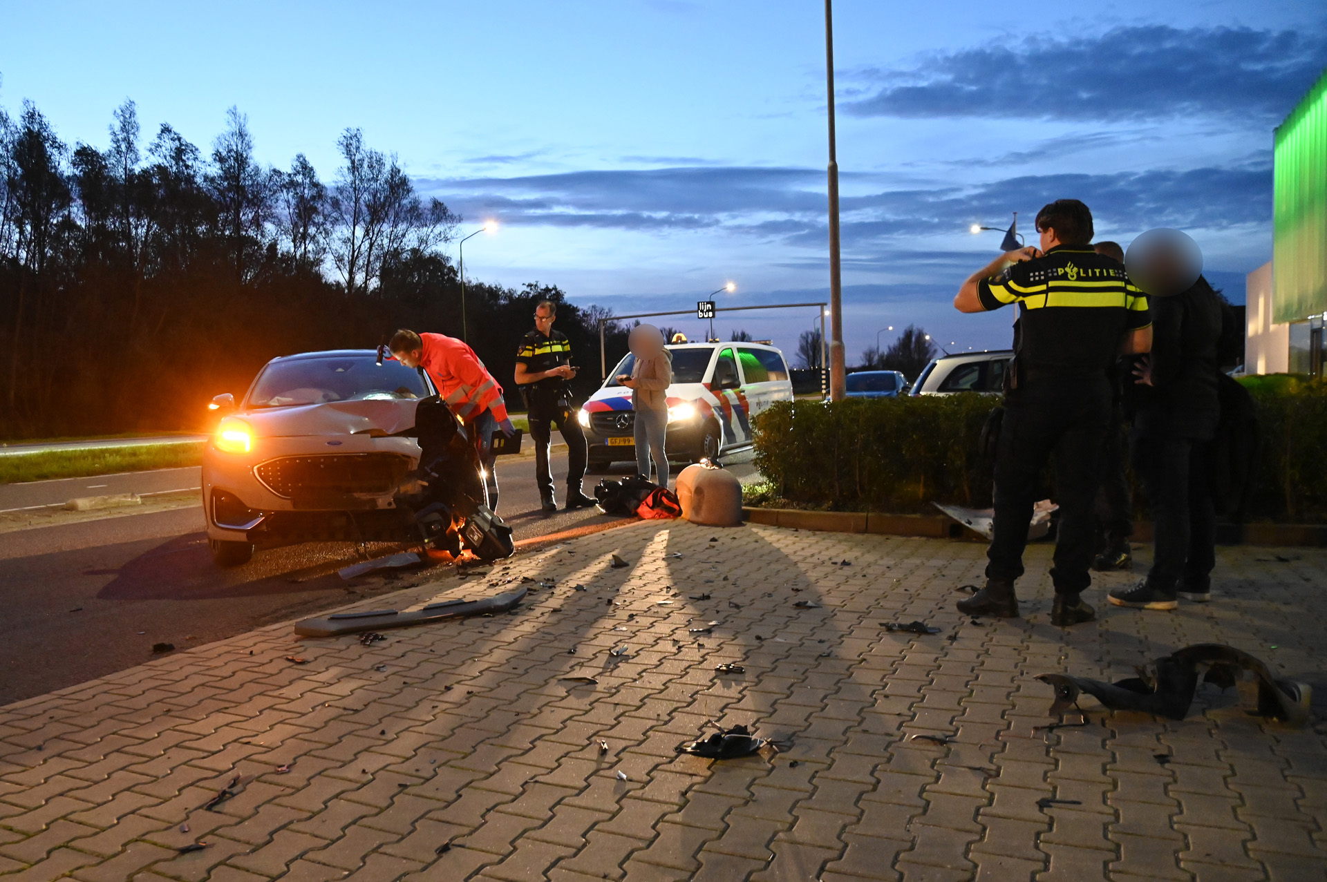 De auto en de scooter liepen aanzienlijke schade op. De bestuurder van de auto bleef ongedeerd en kwam met de schrik vrij. Een bergingsbedrijf heeft de beschadigde auto afgevoerd.