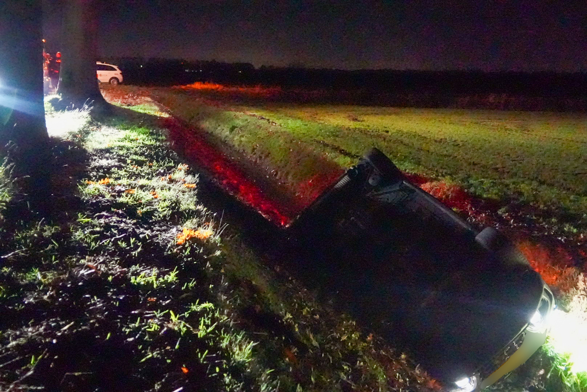 Bestuurder ernstig gewond nadat auto op zijkant in sloot belandt