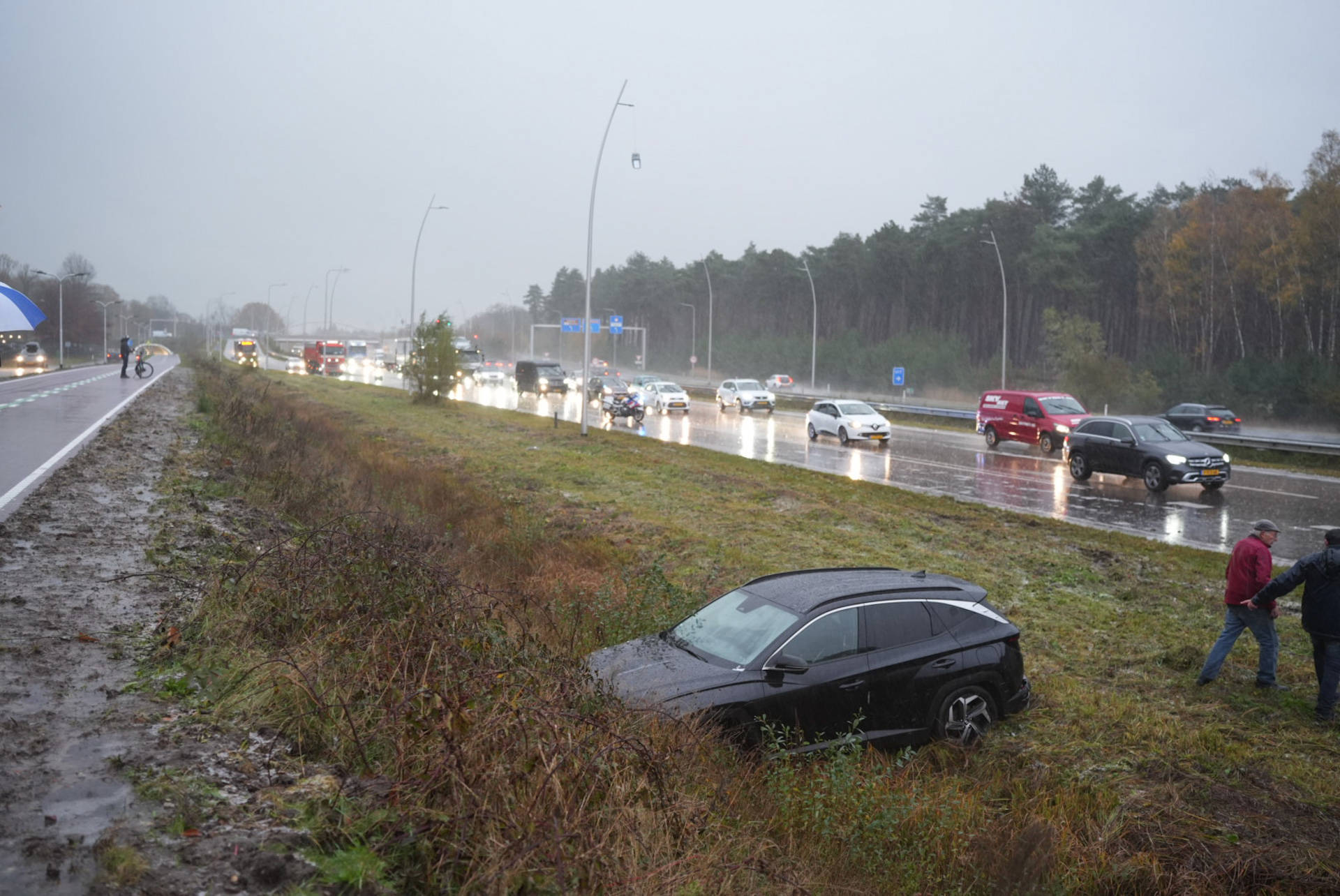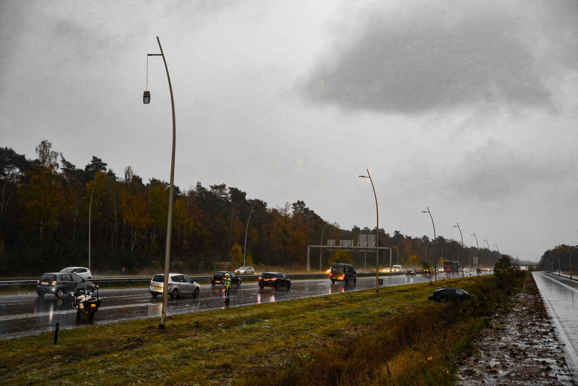 Ongeveer een kwartier later gebeurde op de rijbaan richting Loon op Zand een tweede ongeval, bij het Efteling Hotel. Een auto slipte door het slechte weer, botste tegen een lantaarnpaal en belandde in een sloot. De bestuurder raakte lichtgewond en is ter plekke behandeld. Rijkswaterstaat sloot na het eerste ongeval tijdelijk rijstroken af voor de berging, waardoor in beide richtingen lange files ontstonden. Rond vijf uur werden de rijstroken weer vrijgegeven. Een beschadigde lantaarnpaal moet nog worden veiliggesteld en beide voertuigen zijn weggesleept.