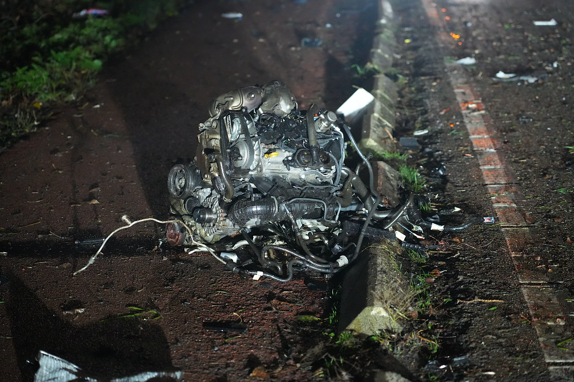 Achtervolging eindigt in zware crash; motorblok uit auto, bestuurder aangehouden
