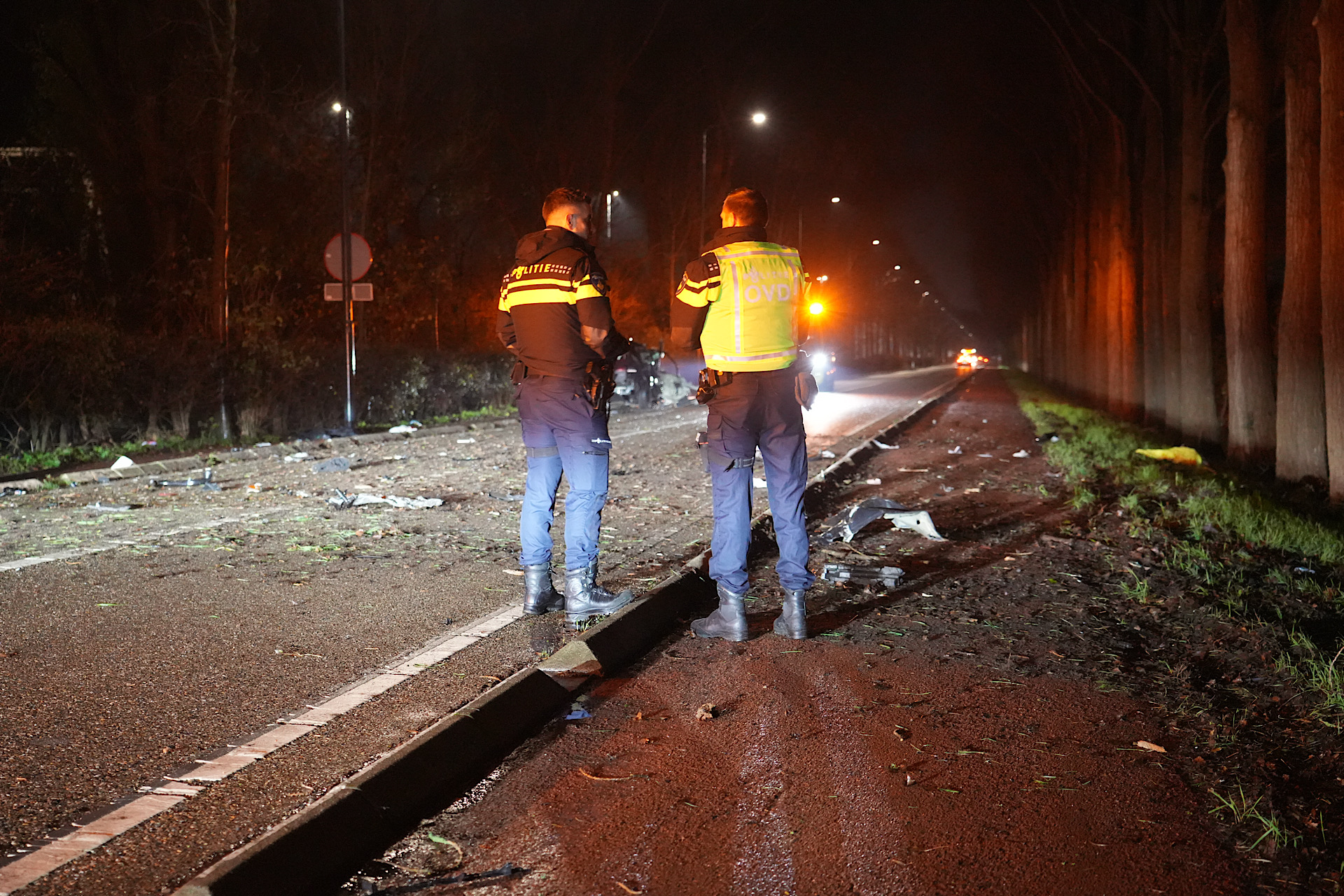De bestuurder negeerde een stopteken tijdens een lasercontrole en sloeg op de vlucht. Agenten zetten daarop de achtervolging in. Op de Oosterhoutseweg verloor de automobilist de controle over het voertuig en botste met grote kracht tegen twee bomen. De ravage was enorm: brokstukken lagen verspreid over de weg en het motorblok van de auto belandde op het wegdek. Van het voertuig bleef vrijwel niets over.