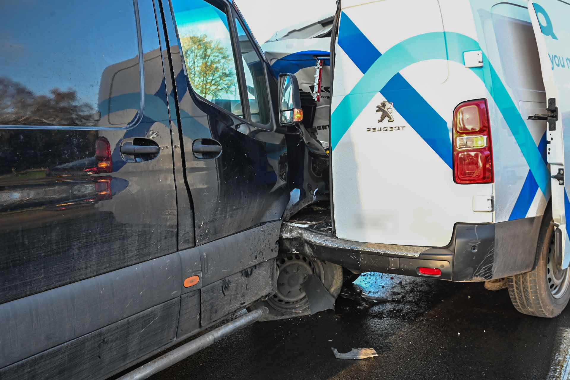 ZUNDERT – Woensdagmiddag zijn twee werkbusjes in botsing gekomen met een vrachtwagen in Zundert. Bij het ongeval raakte één persoon gewond.