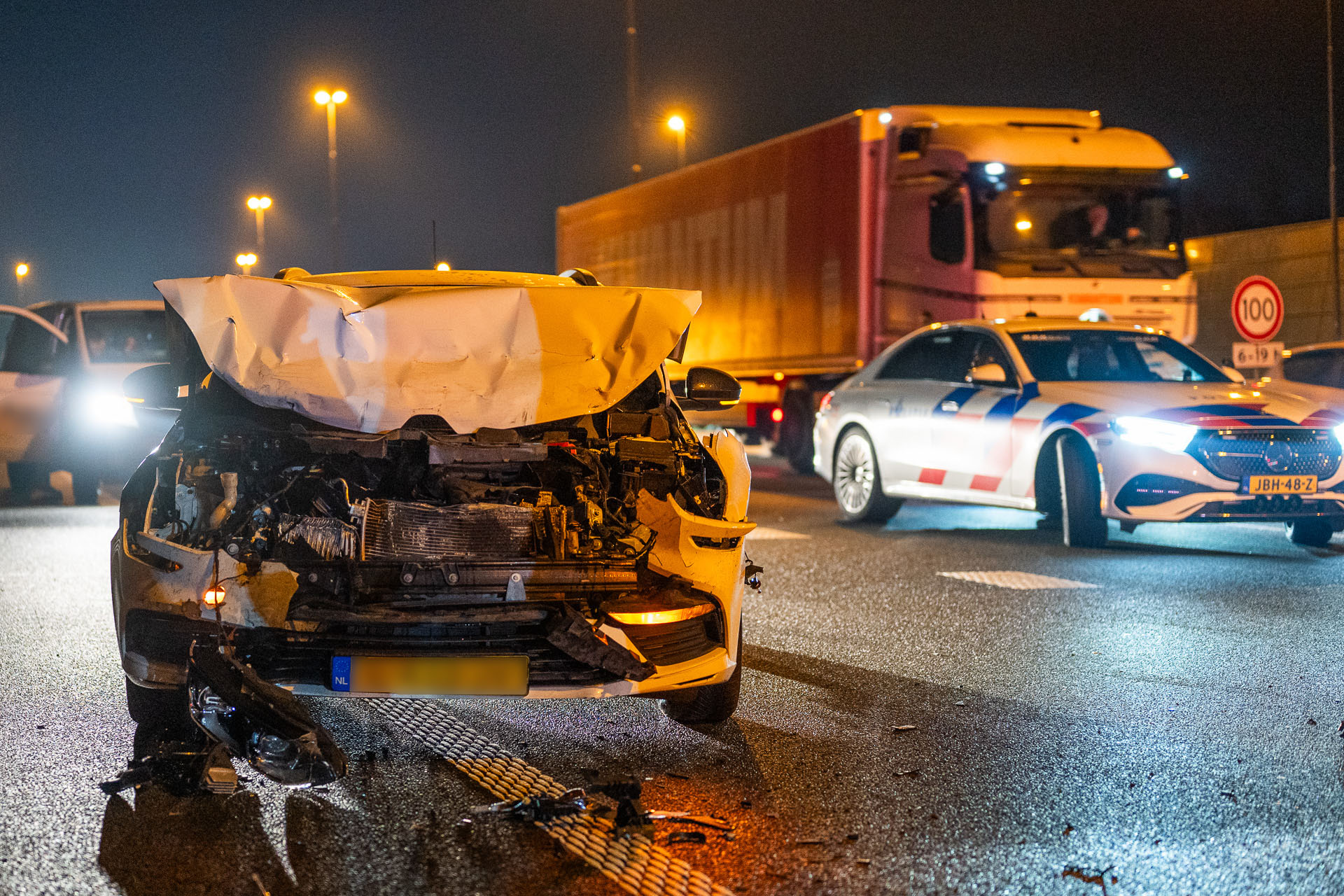 Twee auto’s zwaar beschadigd na botsing met vrachtwagen op snelweg