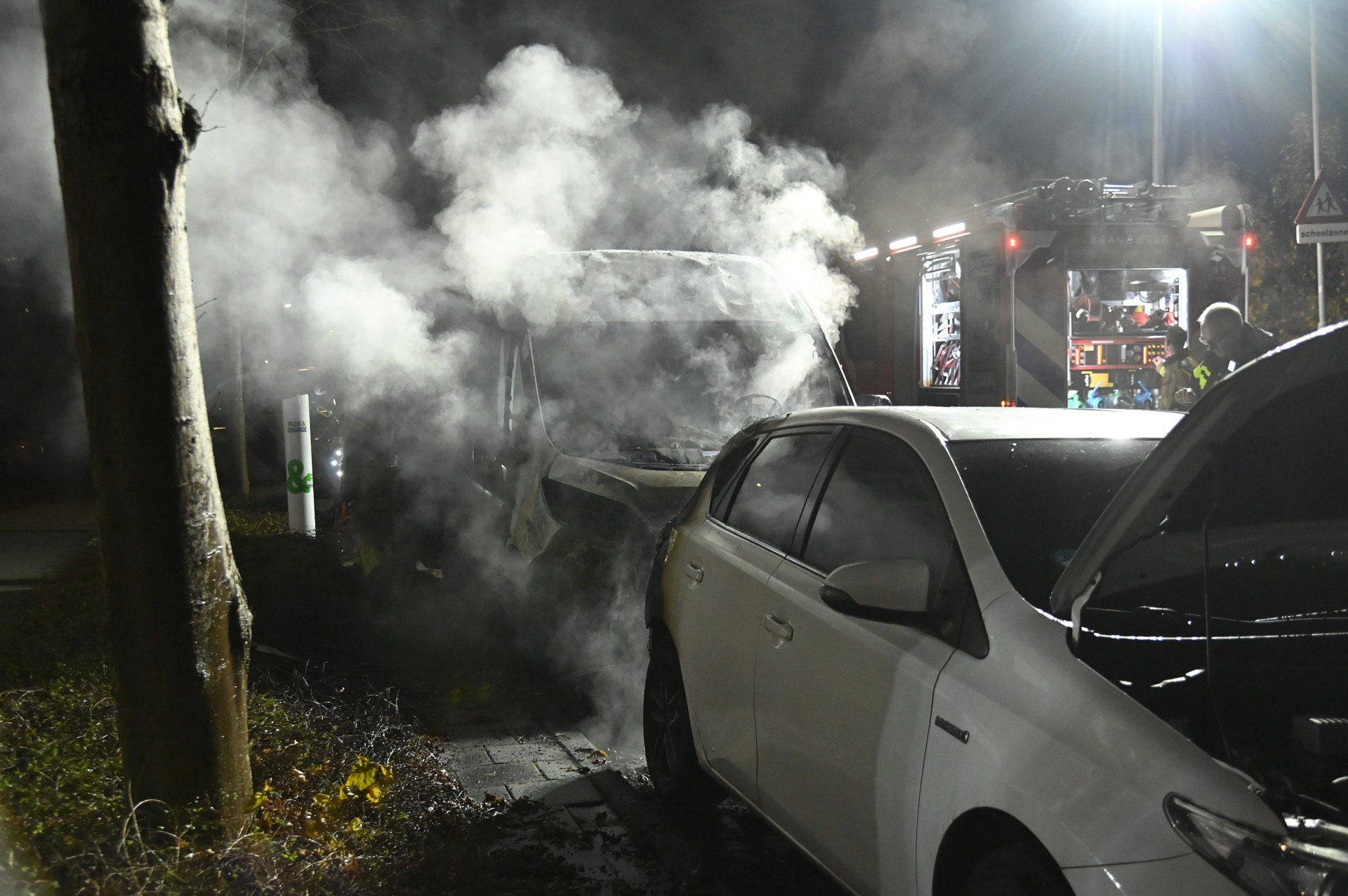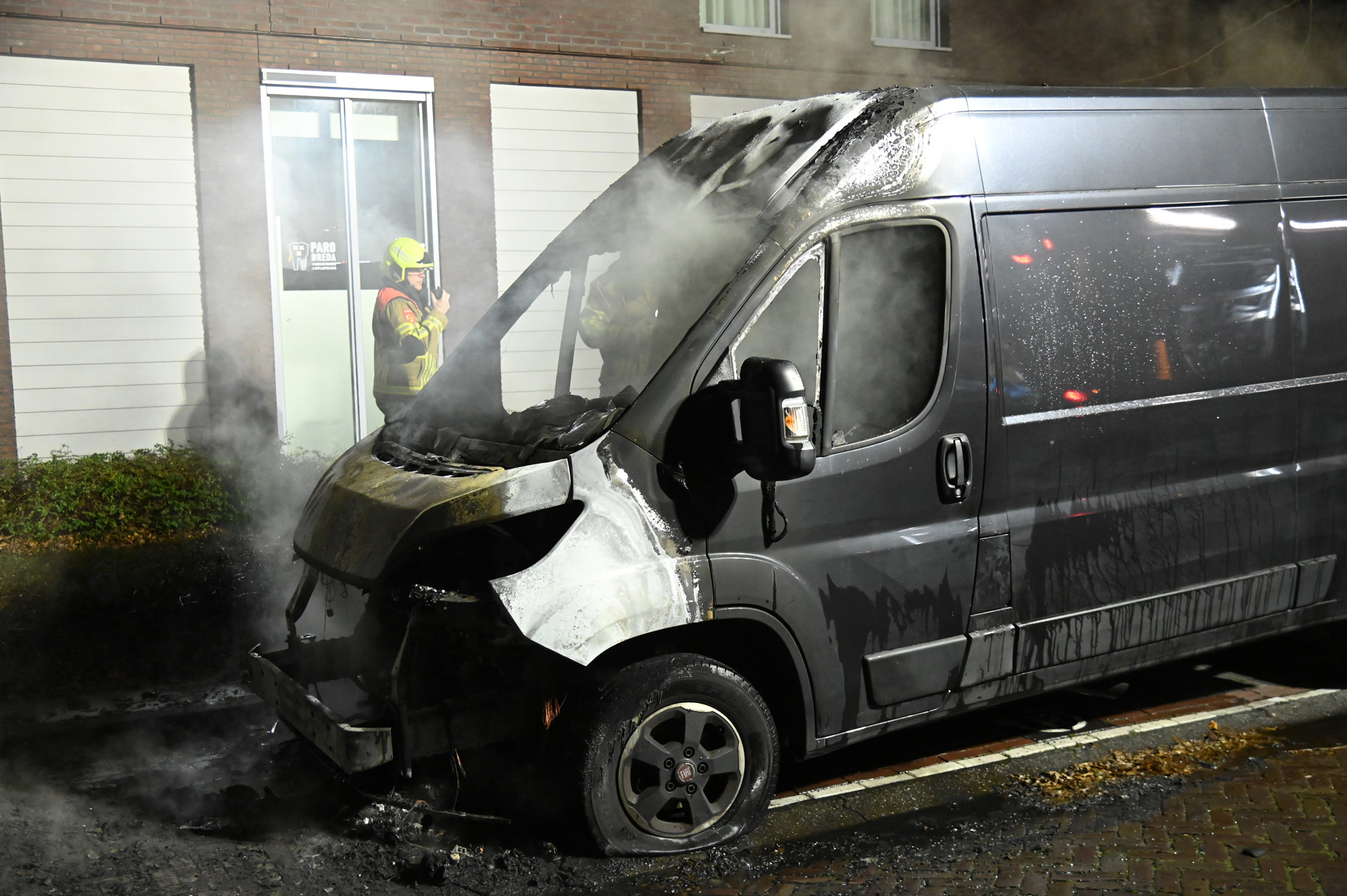 Bestelbus en auto uitgebrand, politie onderzoekt mogelijke brandstichting
