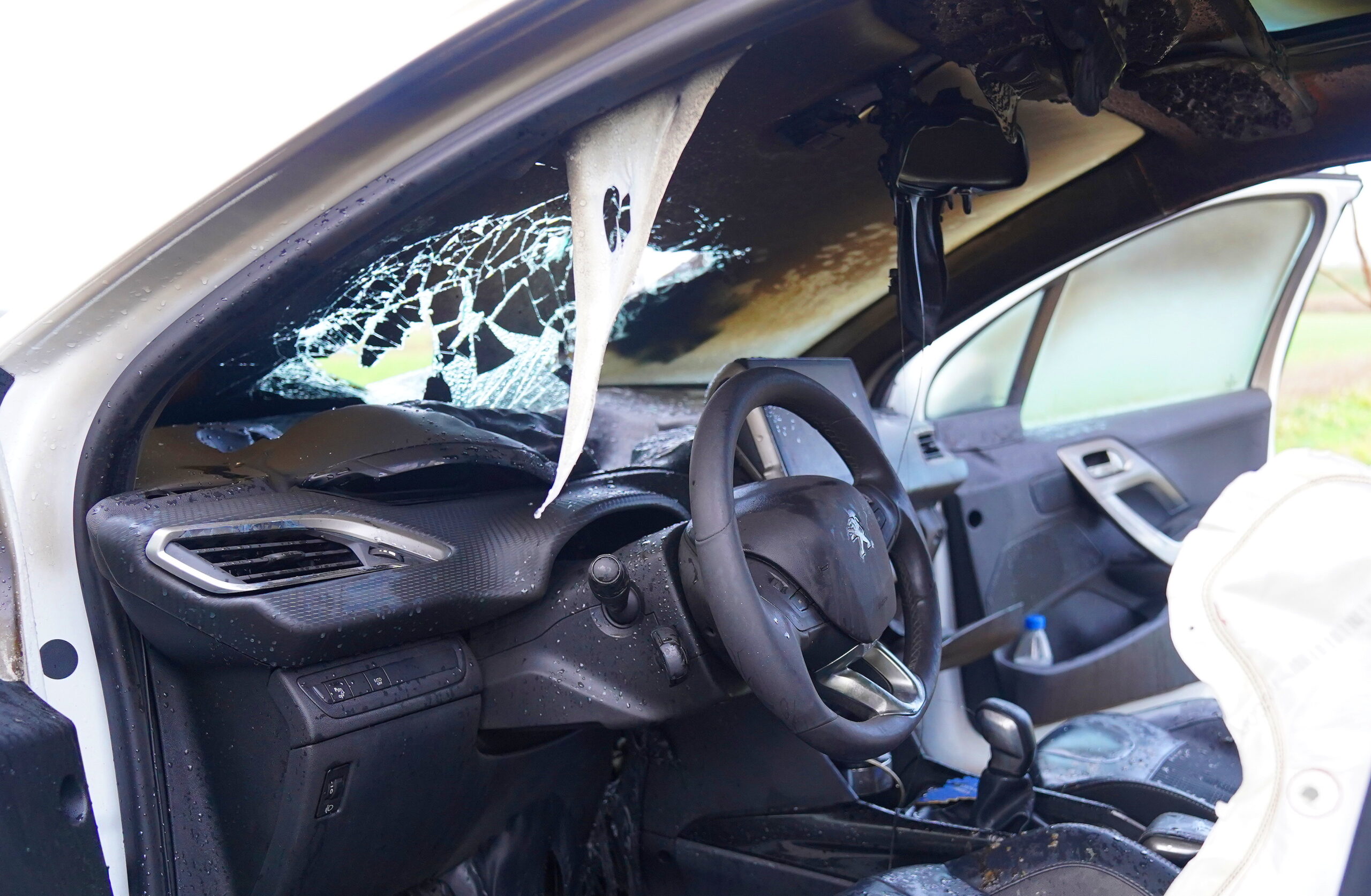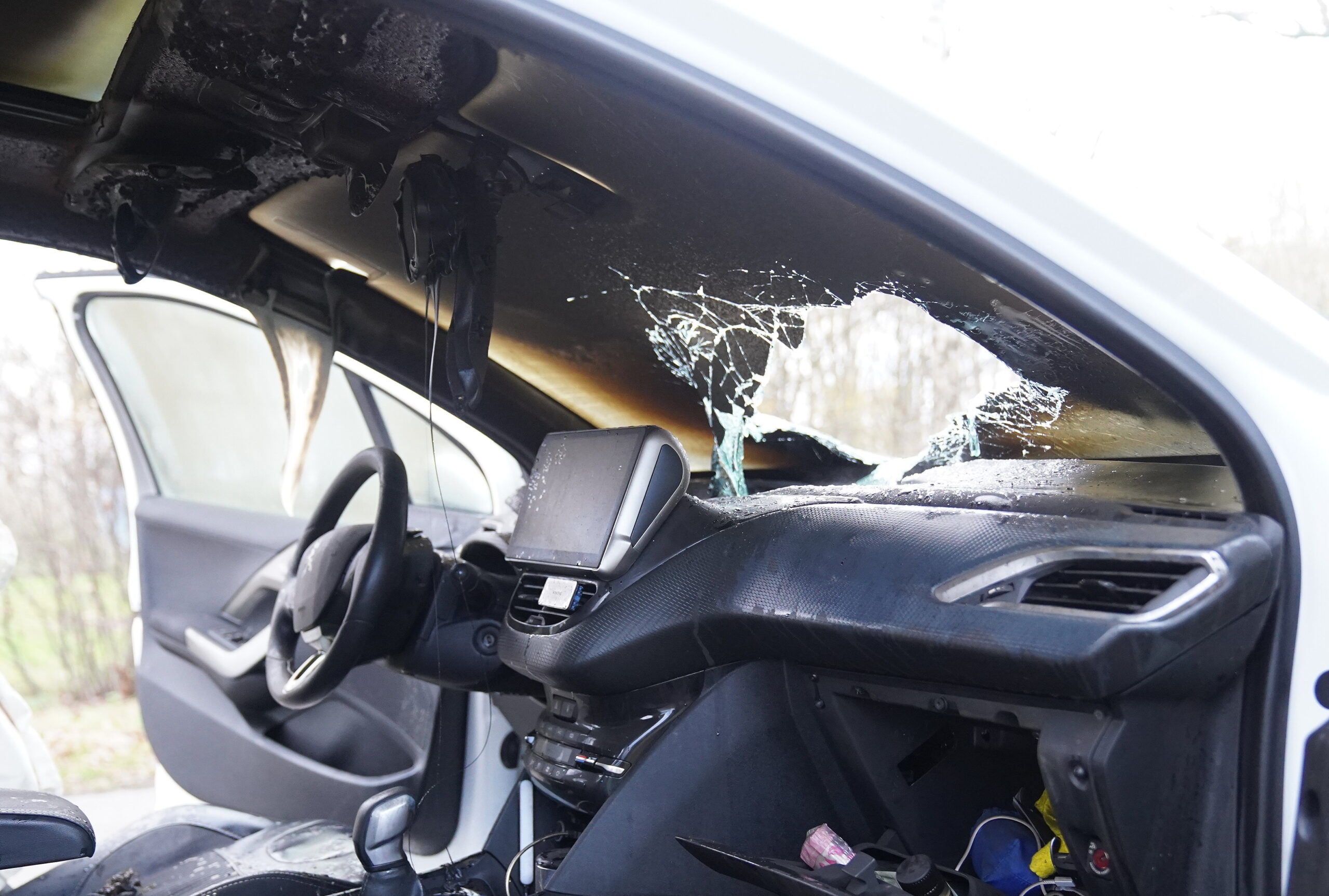 De brand, vermoedelijk veroorzaakt door een technisch mankement, bleef beperkt maar richtte dusdanige schade aan dat de auto als verloren wordt beschouwd.