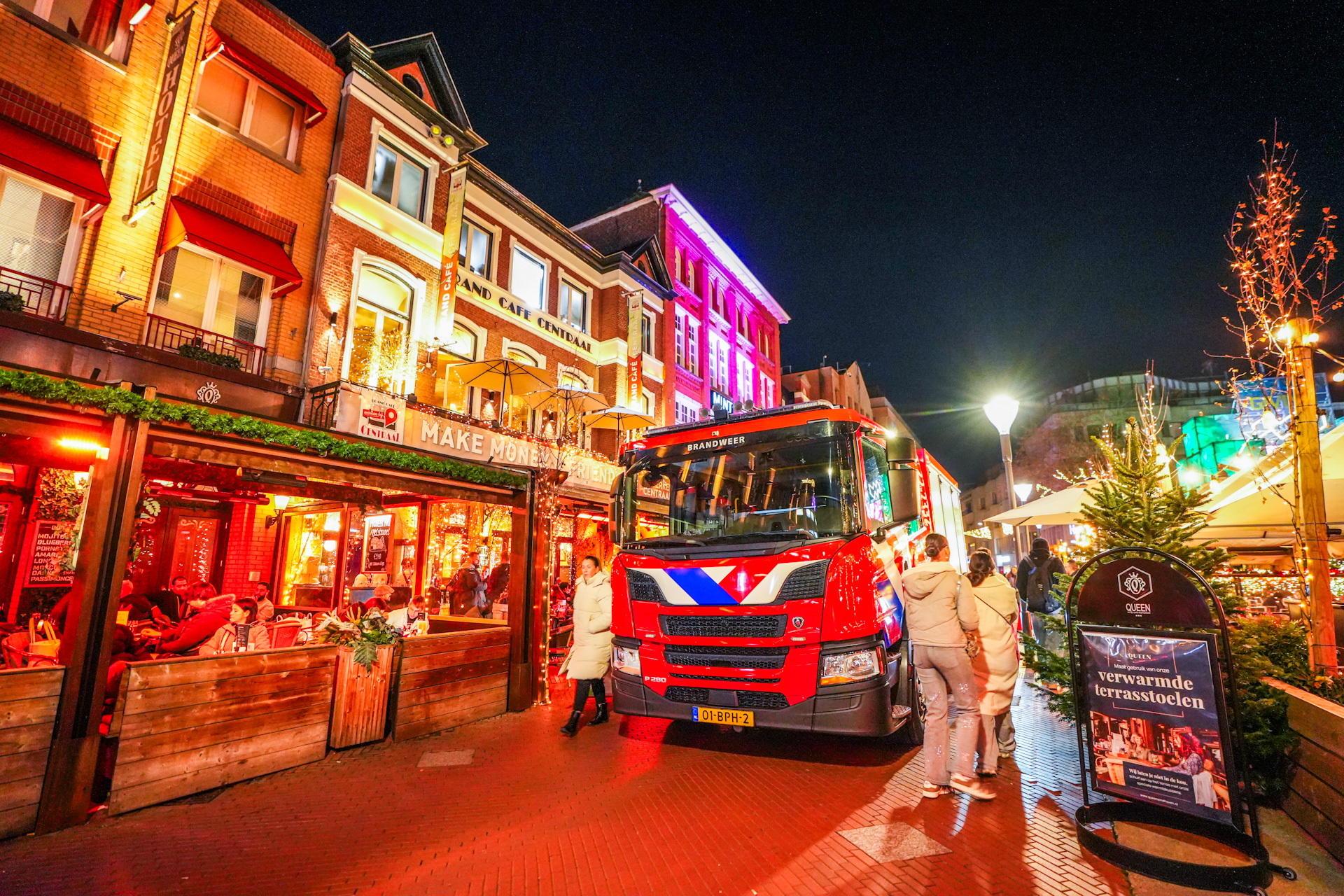 De brandweer was met twee blusvoertuigen en een hoogwerker snel ter plaatse en had het vuur snel onder controle. In het pand ontstond echter wel flinke rookontwikkeling en schade. Stichting Salvage is ingeschakeld om de schadeafhandeling te coördineren. Bezoekers konden tijdens de brand op het terras blijven zitten en de straat hoefde niet afgesloten te worden.