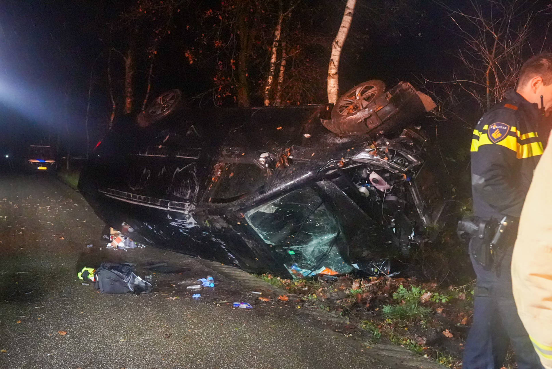 Na de botsing kwam het voertuig op zijn zijkant tot stilstand. Een van de mannen raakte gewond en is met een ambulance naar het ziekenhuis gebracht. De andere twee inzittenden zijn ter plaatse gecontroleerd en hoefden niet mee; zij konden op eigen gelegenheid naar huis.
