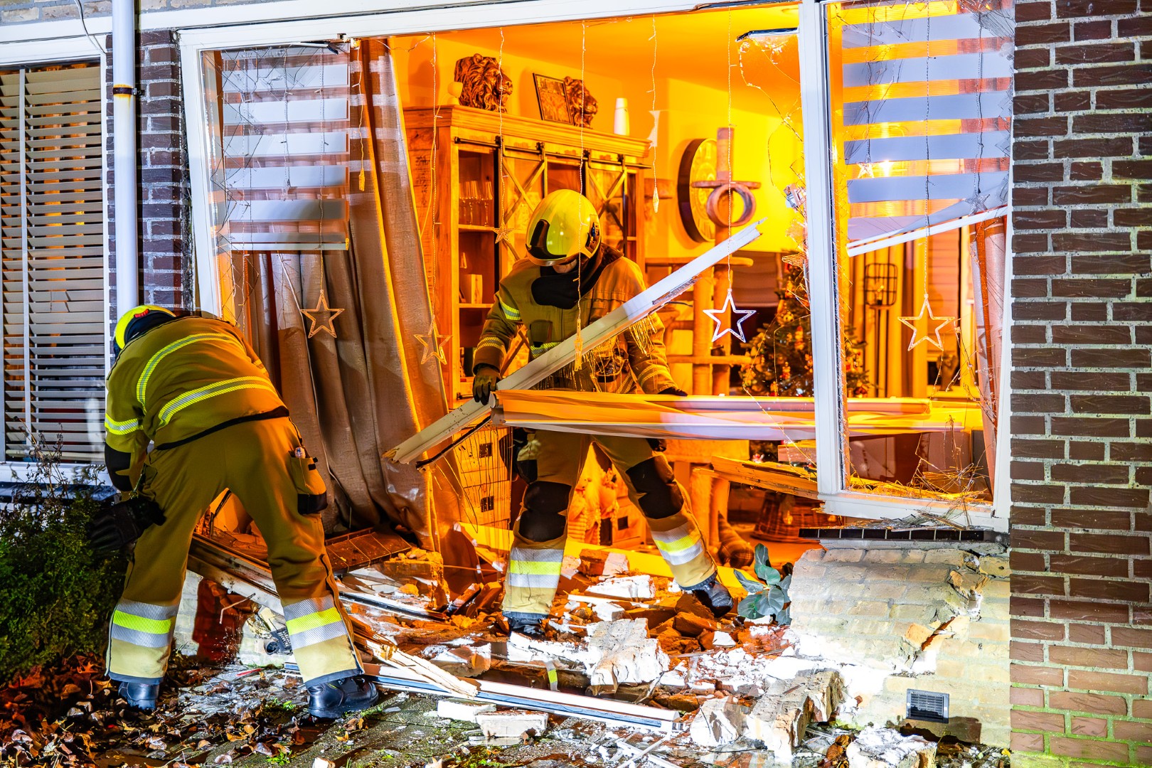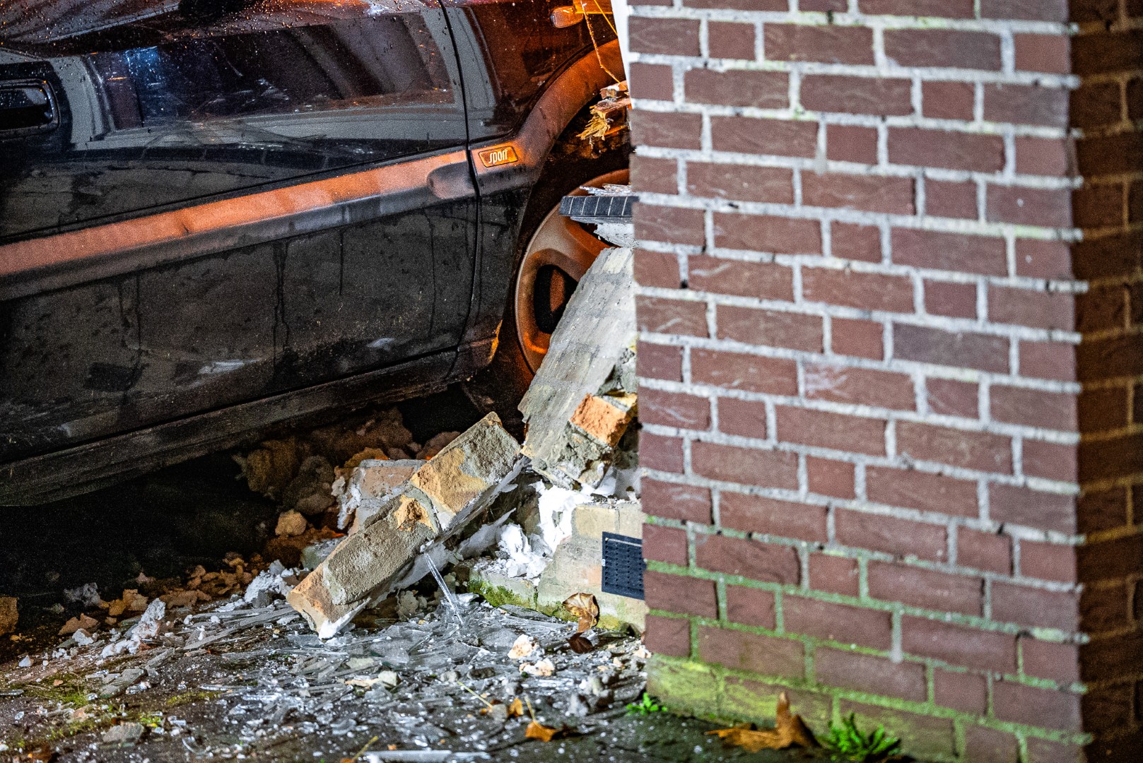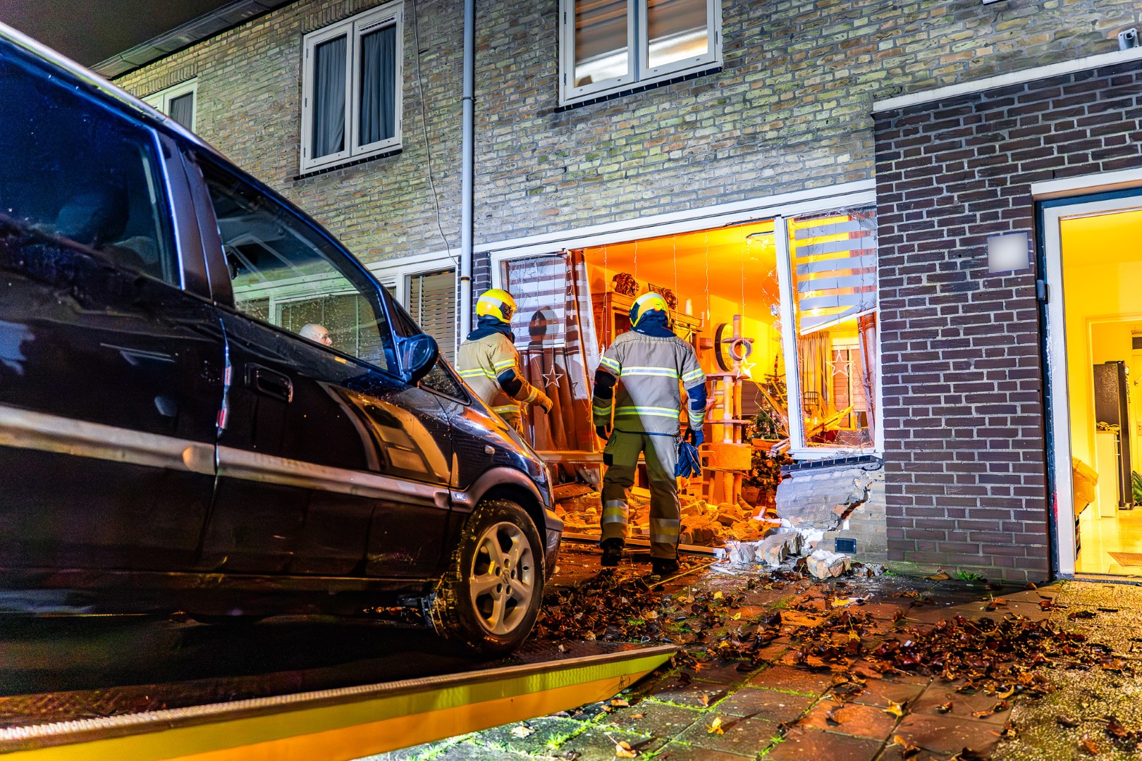 Het ongeval trok veel bekijks in de buurt. Een berger is ter plaatse om de auto weg te takelen. De schade aan de woning is aanzienlijk, vooral op de bovenverdieping.
