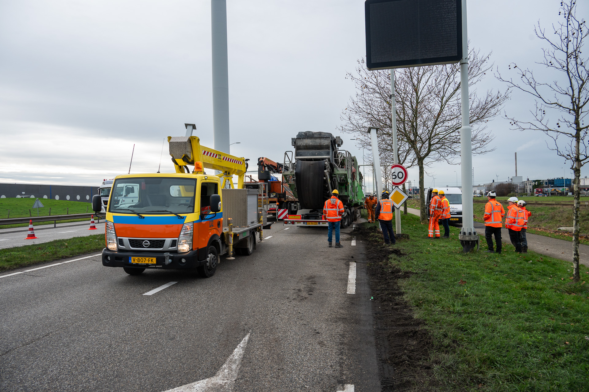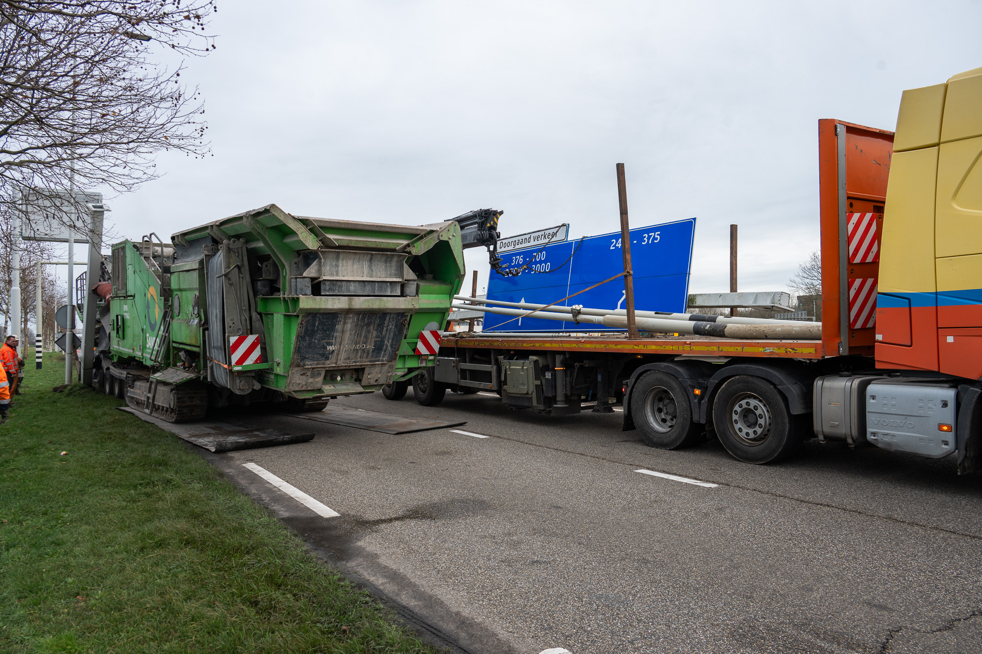 De borden zijn inmiddels op een andere vrachtwagen geladen om te worden afgevoerd. Vanwege het incident is de weg volledig afgesloten, wat ook gevolgen heeft voor het doorgaande vrachtverkeer richting industrieterrein Moerdijk.