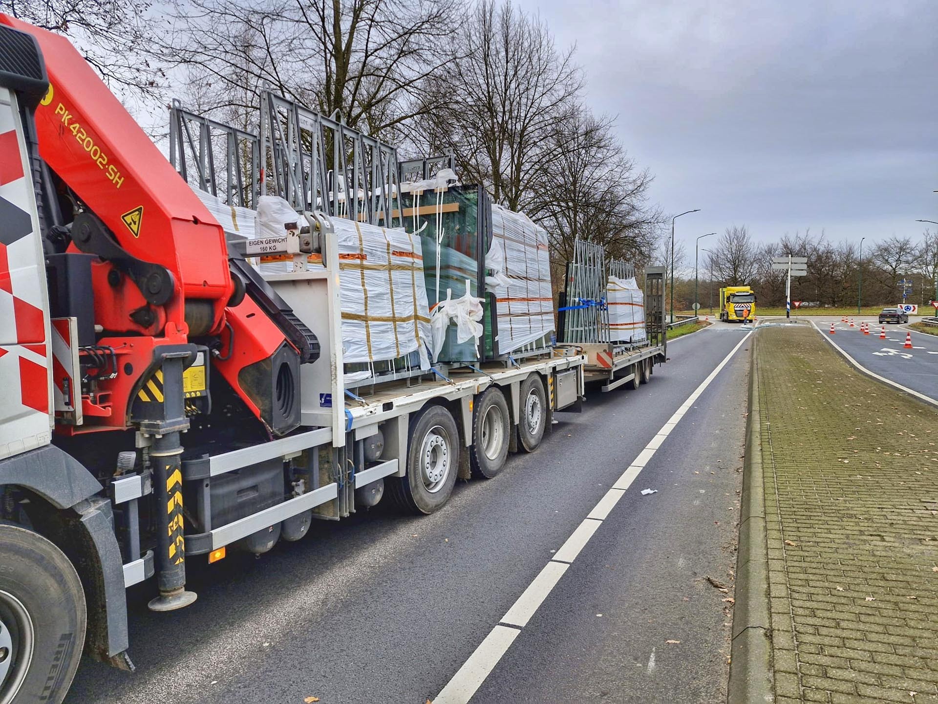 De glasplaten kwamen op het wegdek terecht, vermoedelijk doordat de lading niet voldoende gezekerd was.