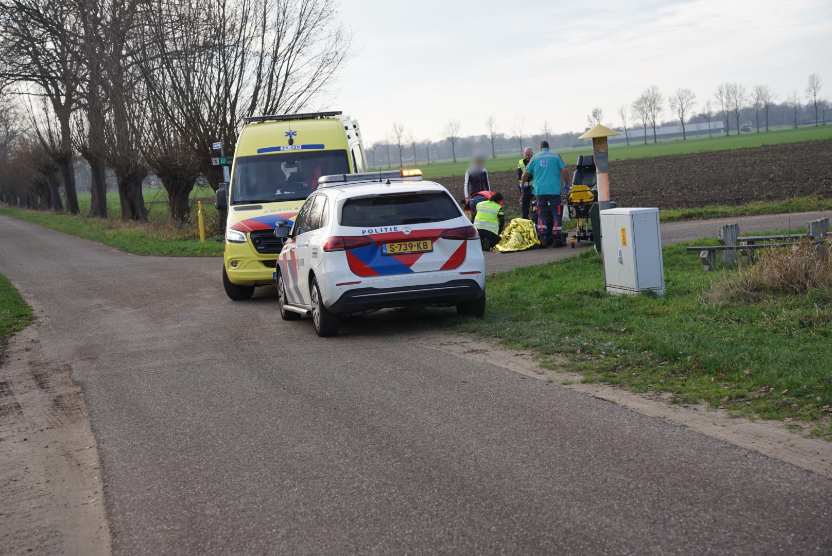 Geplaatst op 13 december 2025, om 14:05 uurLANGEBOM – Op de Vliesweg in Langeboom zijn zaterdagmiddag hulpdiensten ingezet na een ongeval met twee fietsers. Door nog onbekende oorzaak raakten de sturen van de fietsen elkaar, waardoor één van de fietsers ten val kwam.