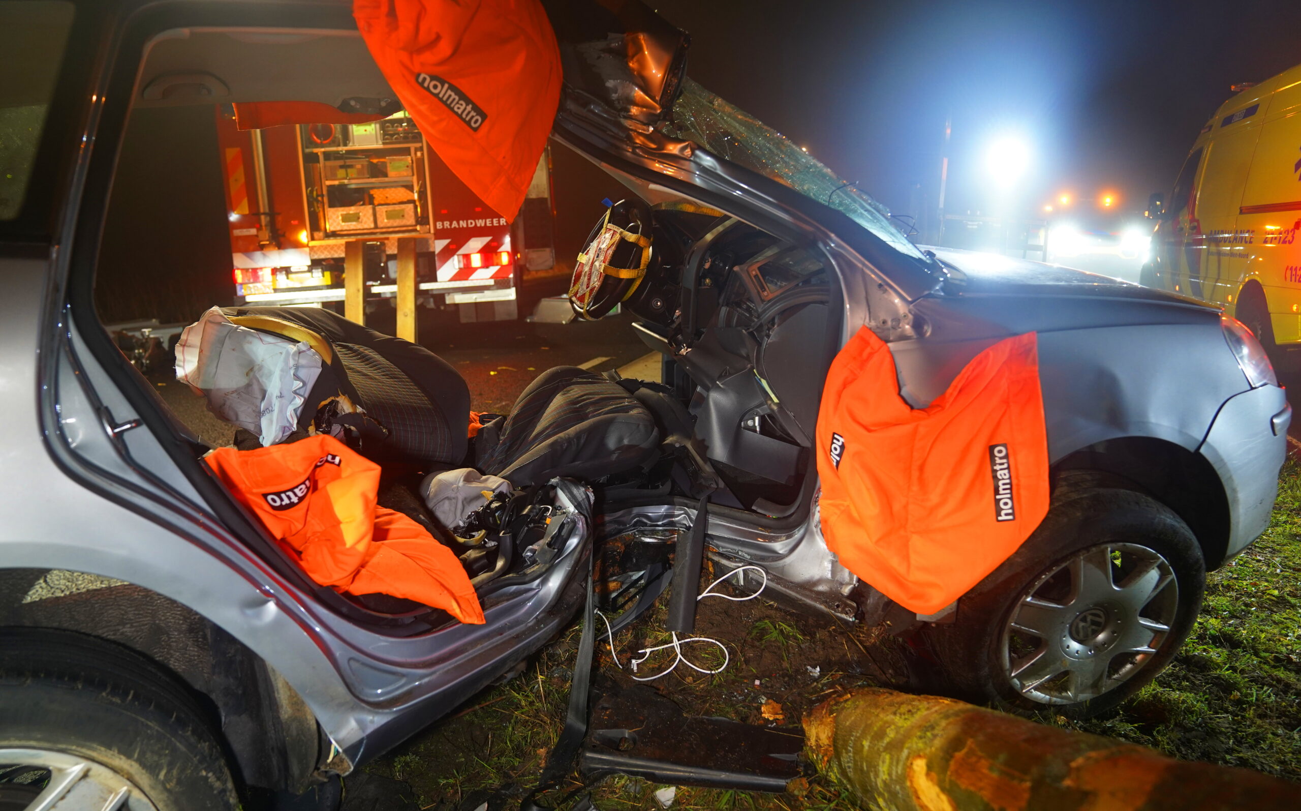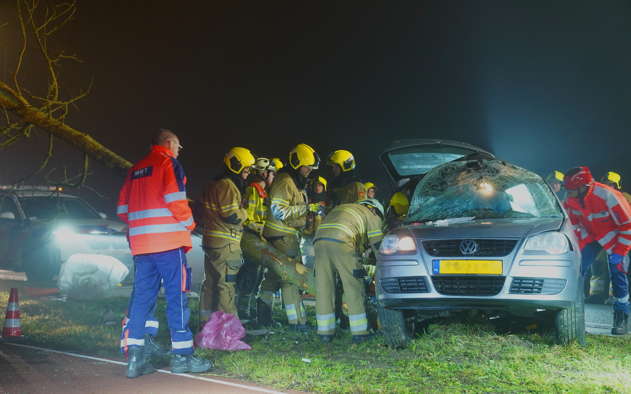 De auto raakte van de weg, belandde in de berm en kwam op de zijkant tegen een boom tot stilstand. Twee inzittenden moesten door de brandweer uit het voertuig worden bevrijd. Bij één slachtoffer duurde de reddingsactie ruim een uur.