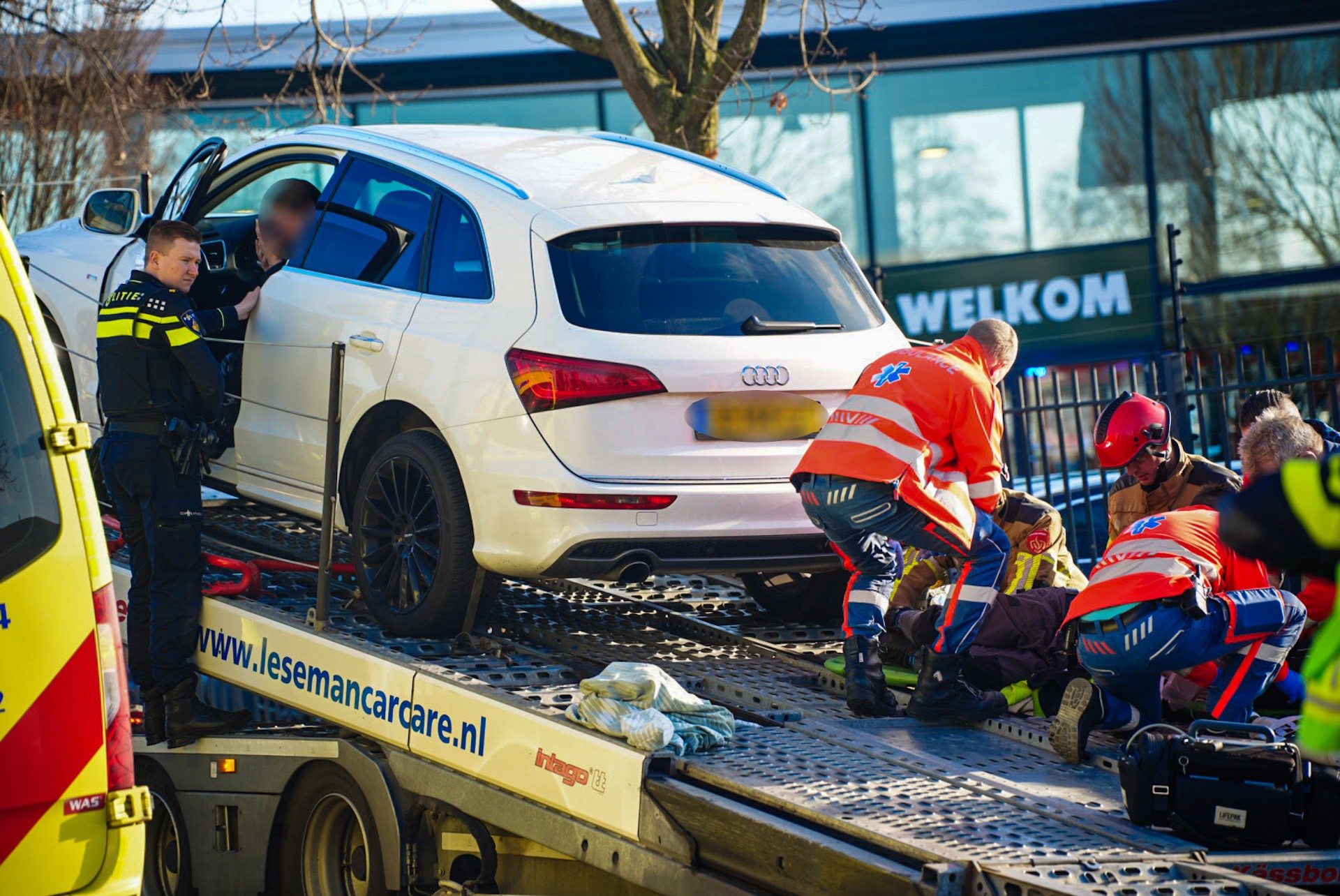 Het slachtoffer liep achter een stilstaande auto op de oprijplaat langs, toen het voertuig plotseling begon te rollen. De man raakte bekneld onder de auto, volgens een omstander. Een collega die verderop aan het werk was, hoorde het gegil en schoot te hulp. Zij wist de auto naar voren te rijden en op de rem te houden tot de hulpdiensten arriveerden.