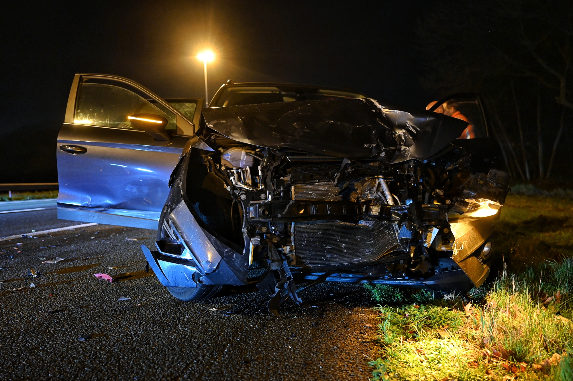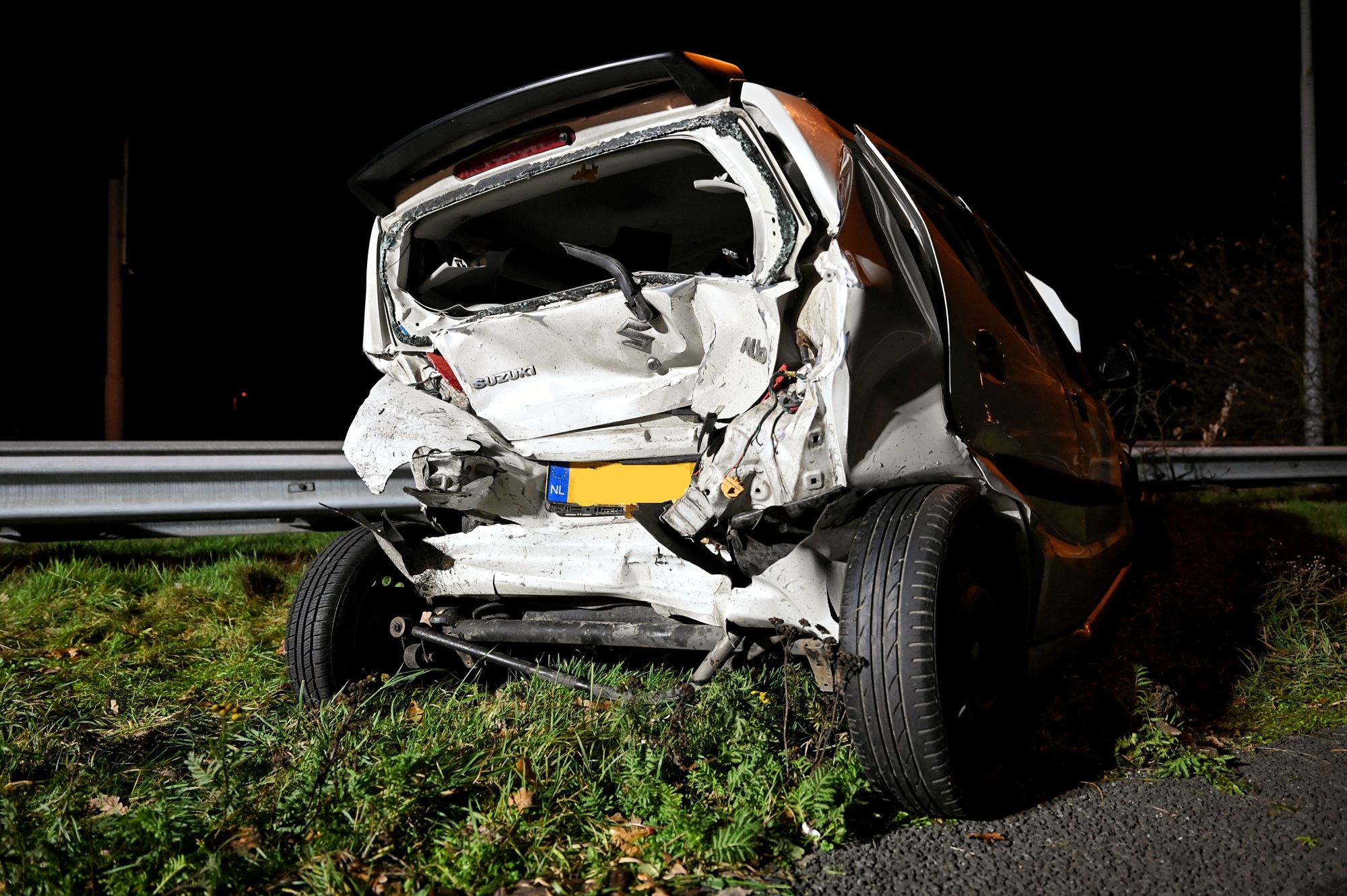 De Suzuki kwam zo’n 300 meter verder tot stilstand tegen de vangrail en raakte zwaar beschadigd. De bestuurder zat bekneld en is door de brandweer bevrijd. Hij is naar het ziekenhuis gebracht. In de auto zat ook een chihuahua; de politie heeft het dier opgevangen.