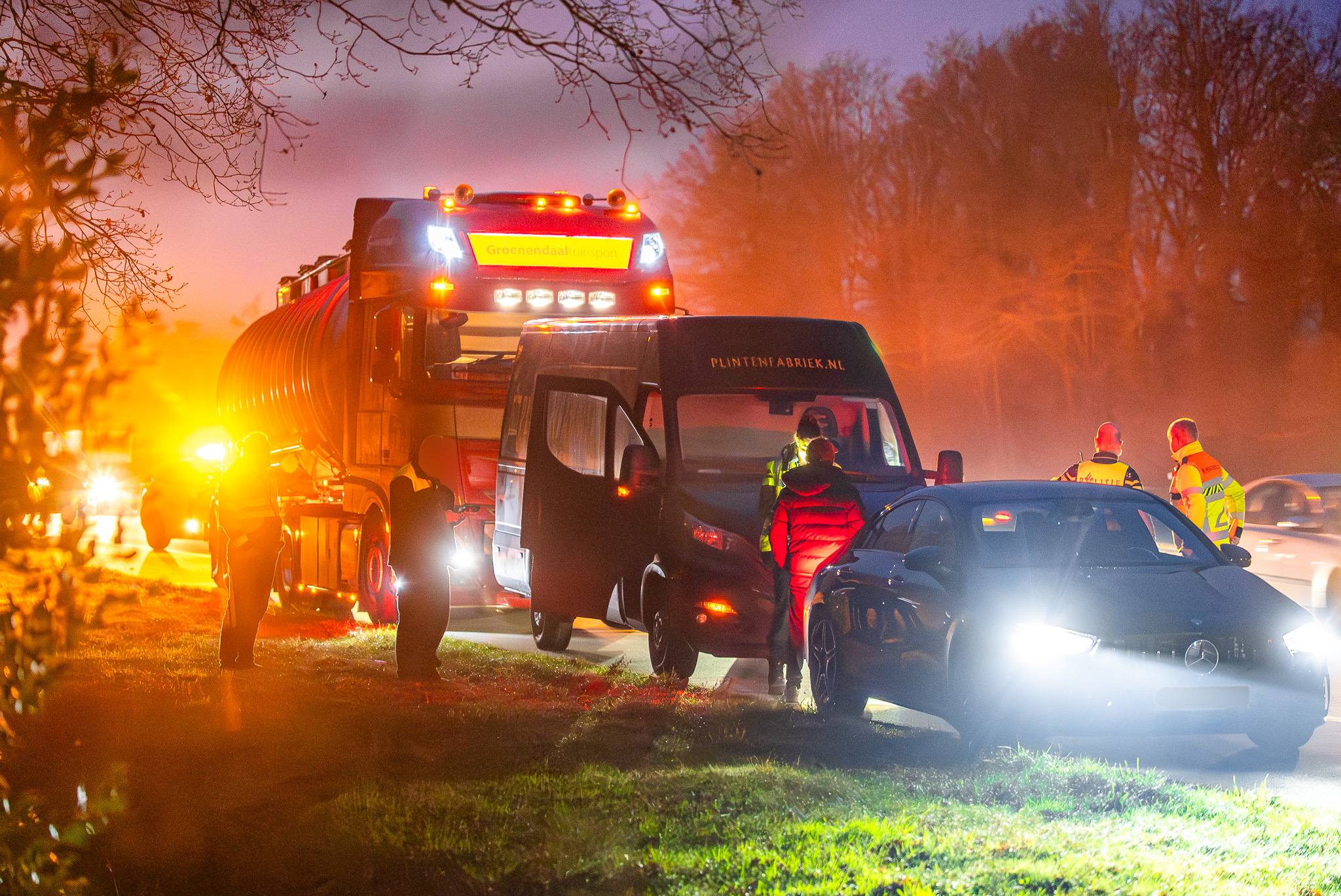 De voertuigen liepen lichte schade op: de vrachtwagen had schade aan de grill, de bestelbus aan het achterste opstapje en de personenauto eveneens lichte schade. Door de aanrijding werd de tweede rijstrook tijdelijk afgesloten, wat leidde tot een korte file.