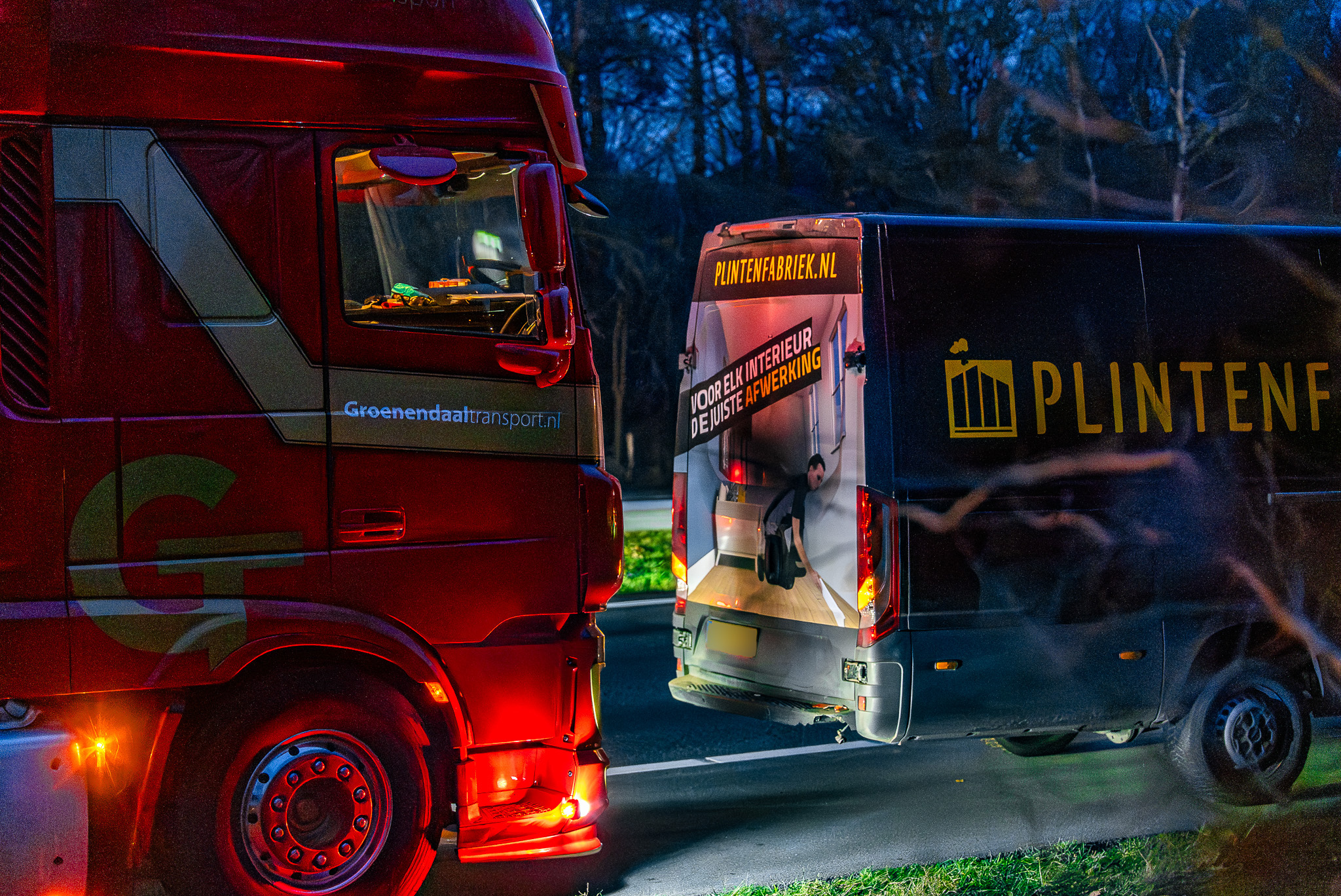 De voertuigen liepen lichte schade op: de vrachtwagen had schade aan de grill, de bestelbus aan het achterste opstapje en de personenauto eveneens lichte schade. Door de aanrijding werd de tweede rijstrook tijdelijk afgesloten, wat leidde tot een korte file.