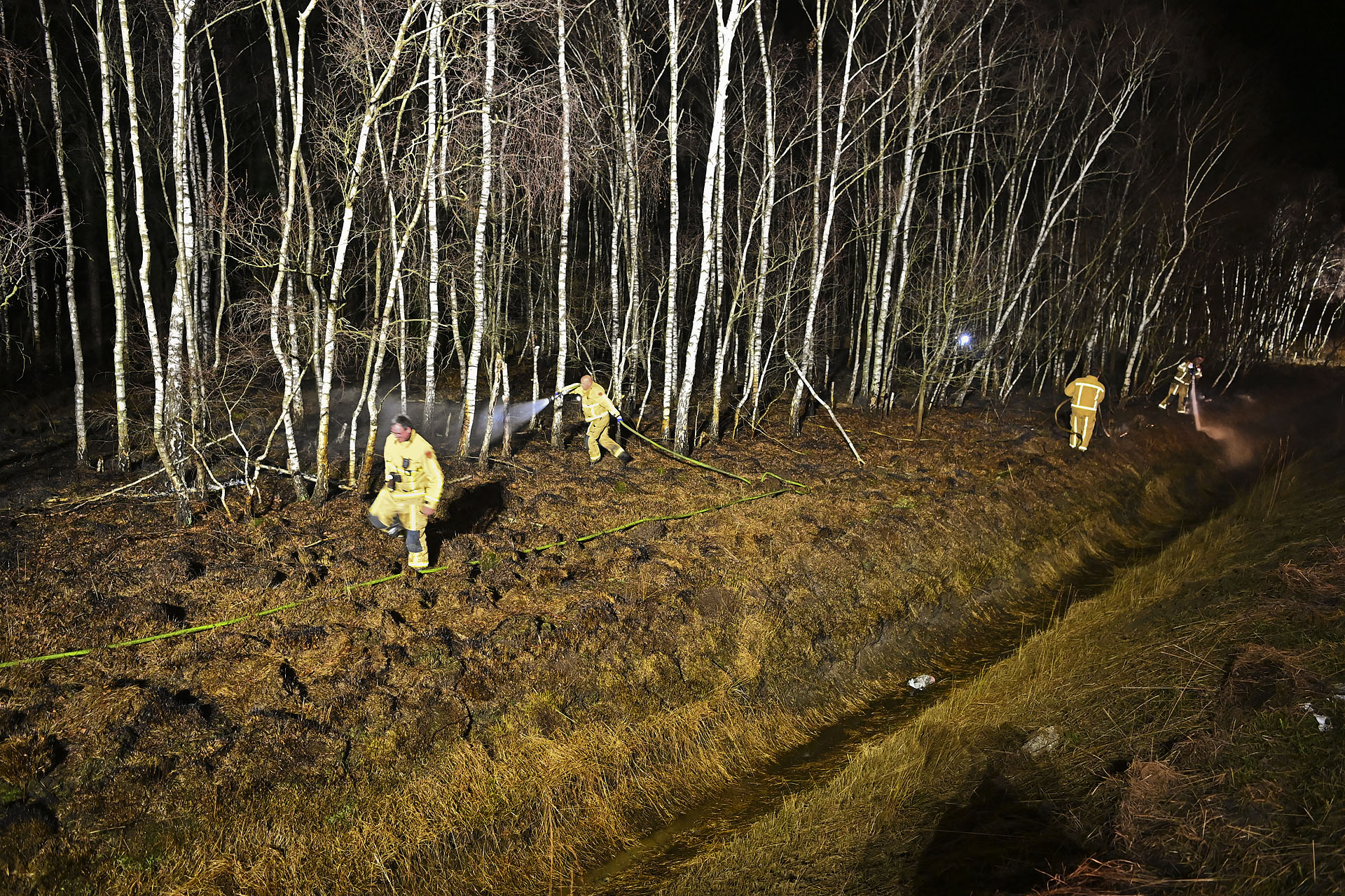 Om bij de brandhaard te komen, plaatste de brandweer twee bruggen over een sloot. Tijdens de bluswerkzaamheden werd de weg volledig afgesloten voor verkeer. De inzet was snel en effectief, waardoor verdere uitbreiding kon worden voorkomen.