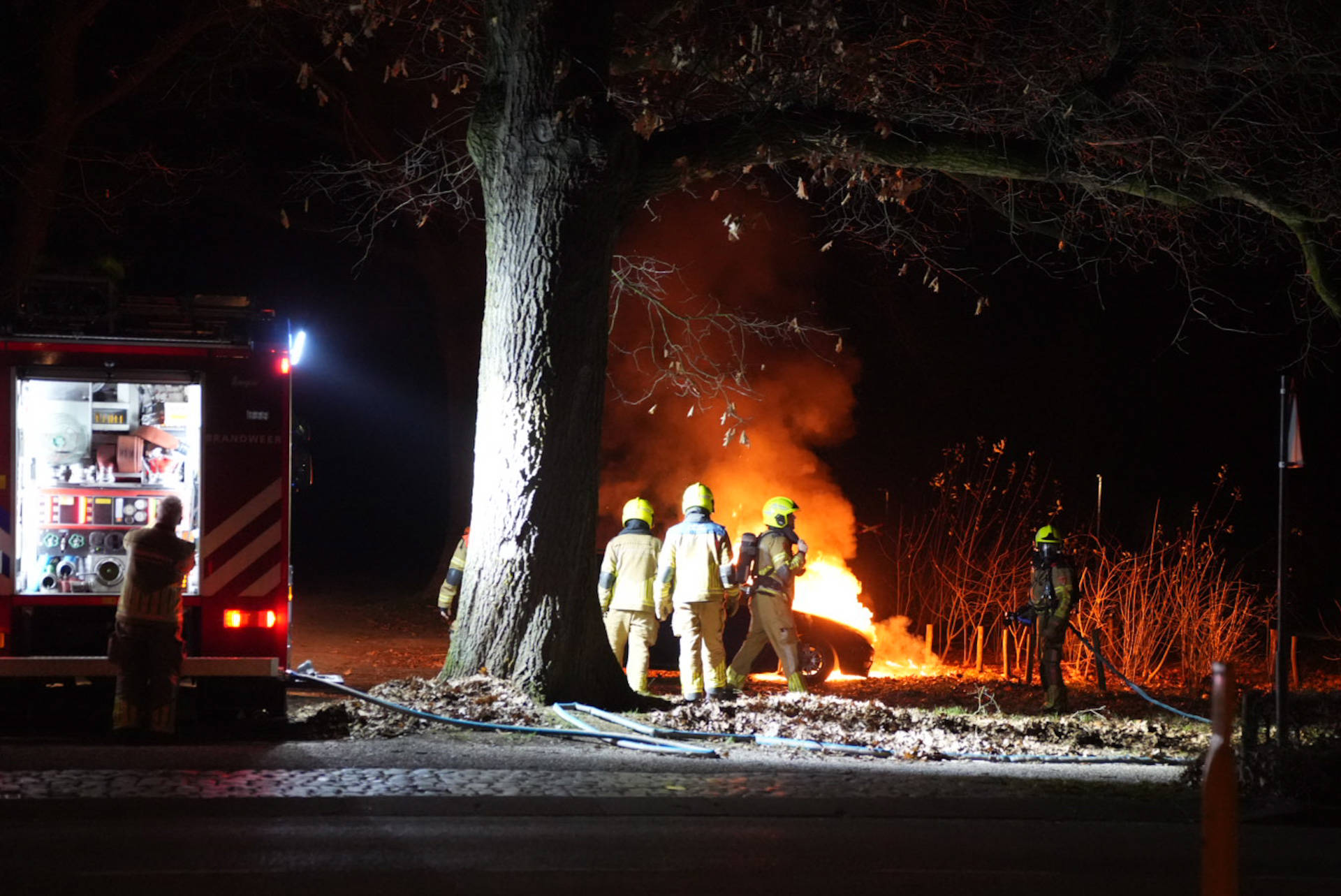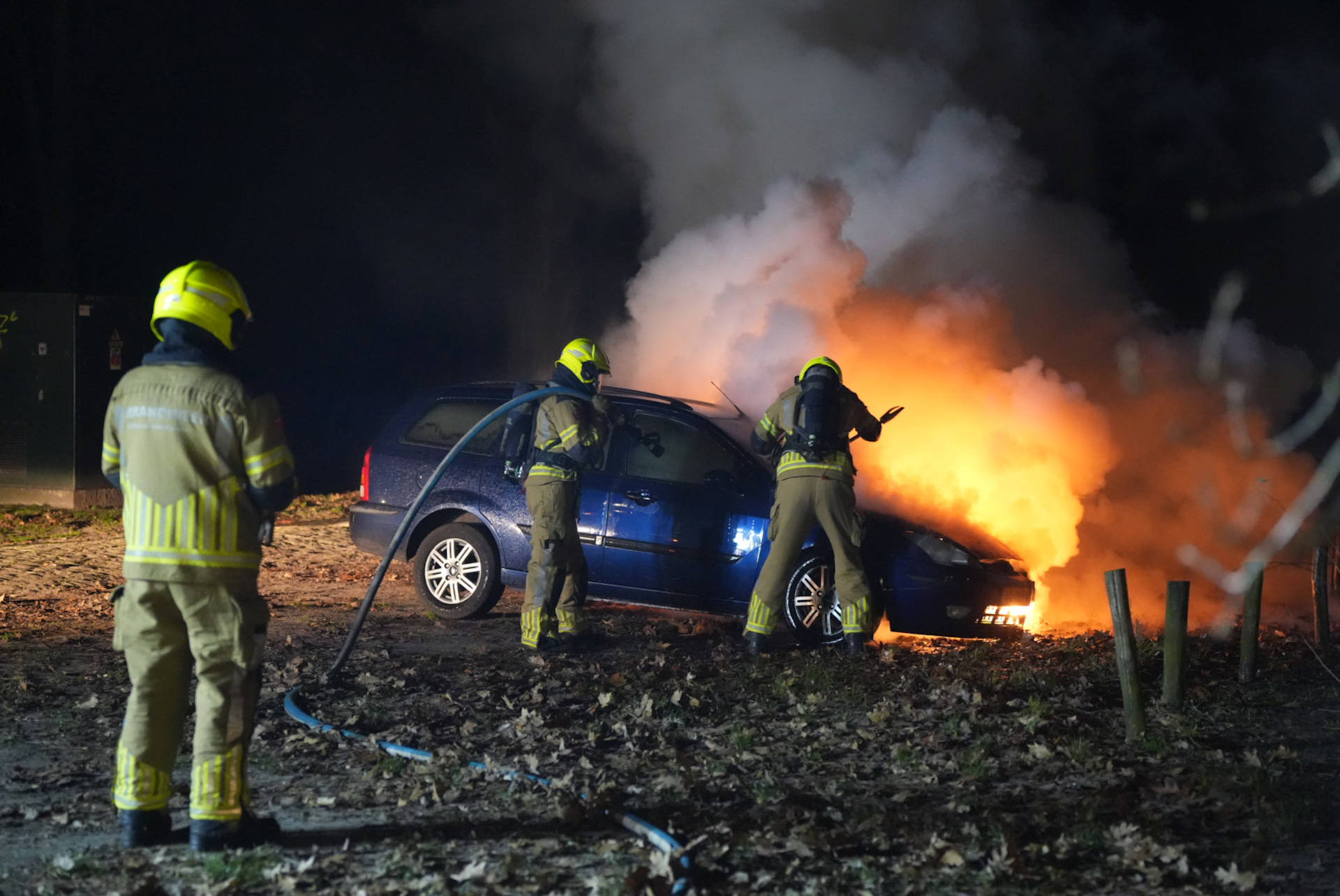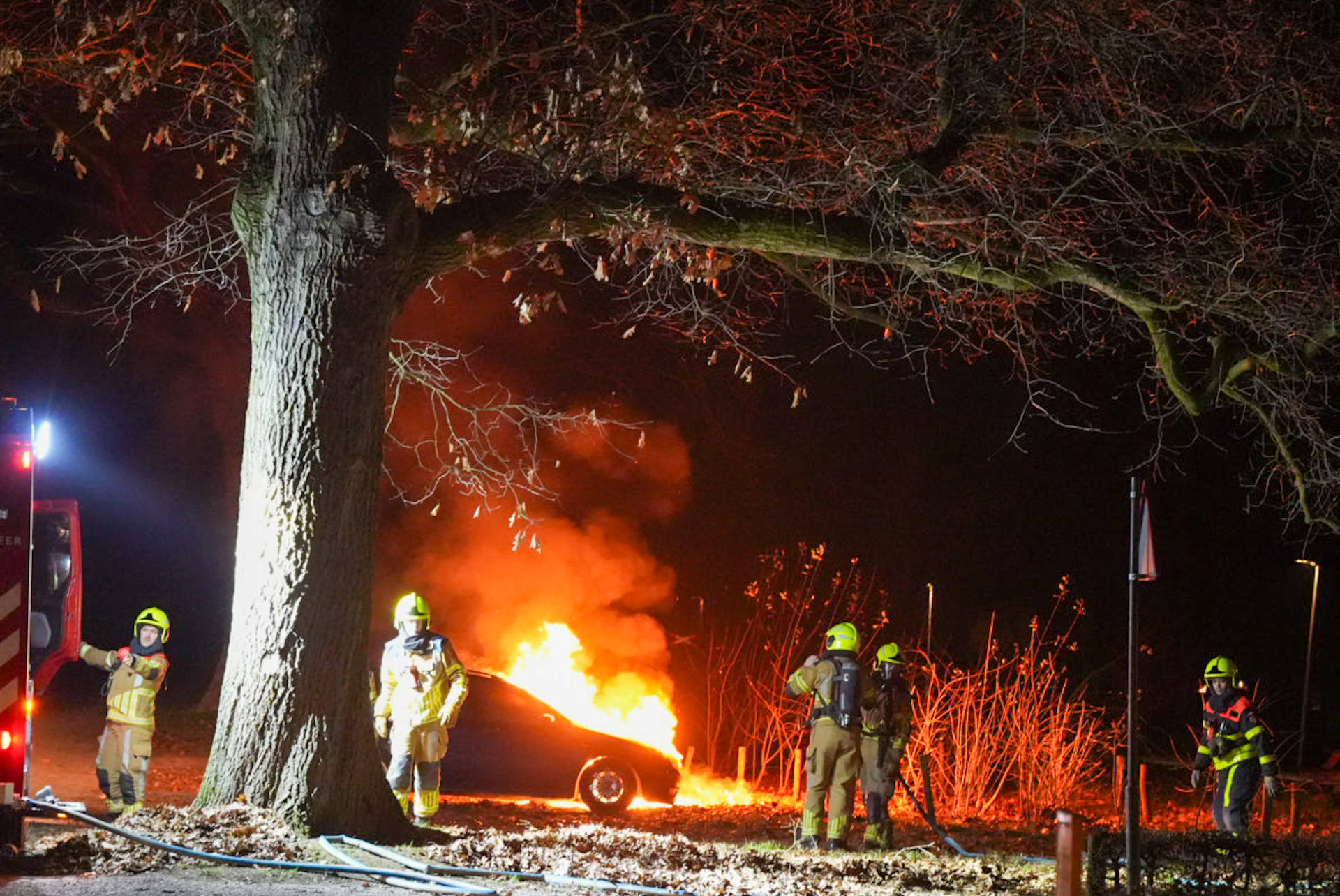 Auto brandt volledig uit op parkeerplaats, vermoedelijk brandstichting