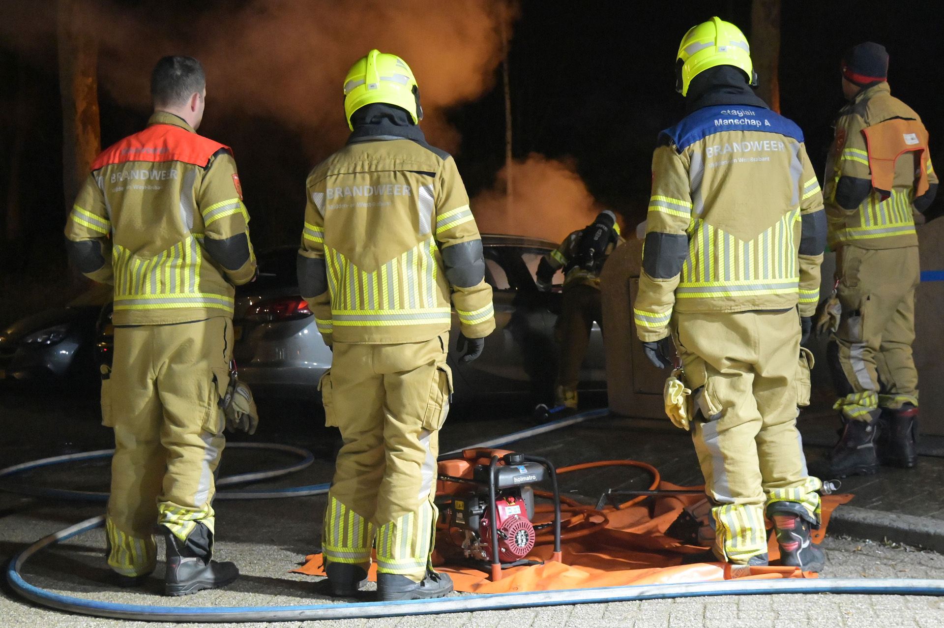 De brandweer was snel ter plaatse, maar kon niet voorkomen dat de voorzijde en het interieur van de auto volledig uitbrandden. Er raakte niemand gewond.