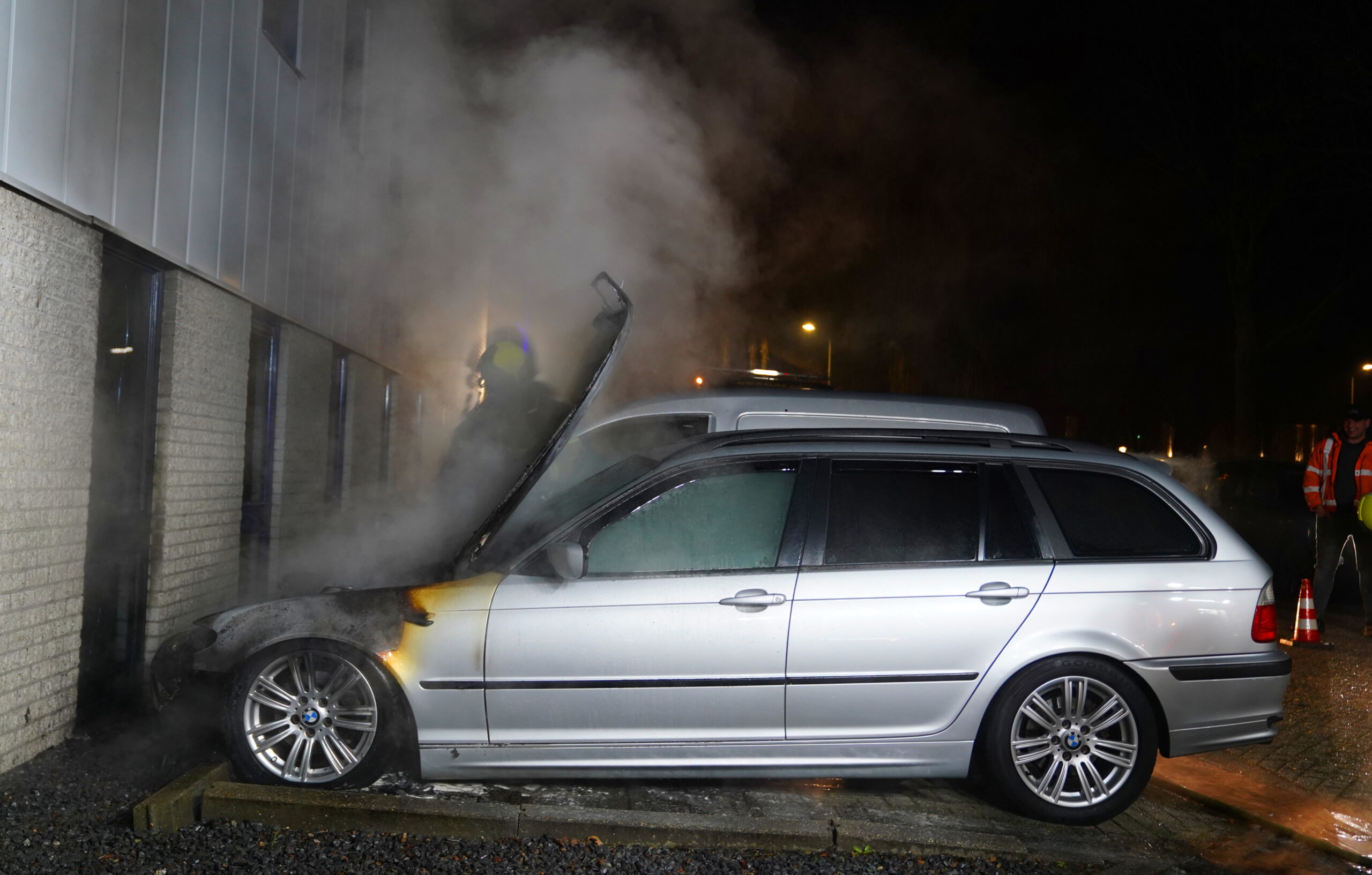 Bij aankomst stond een geparkeerde auto aan de voorzijde van het pand volledig in brand. Door de hitte sprong een raam van het gebouw. De brandweer wist het vuur snel onder controle te krijgen, maar het voertuig brandde volledig uit. Met behulp van brandblussers wisten omwonenden en een brandweerman te voorkomen dat het vuur oversloeg naar een tweede auto van dezelfde eigenaar.
