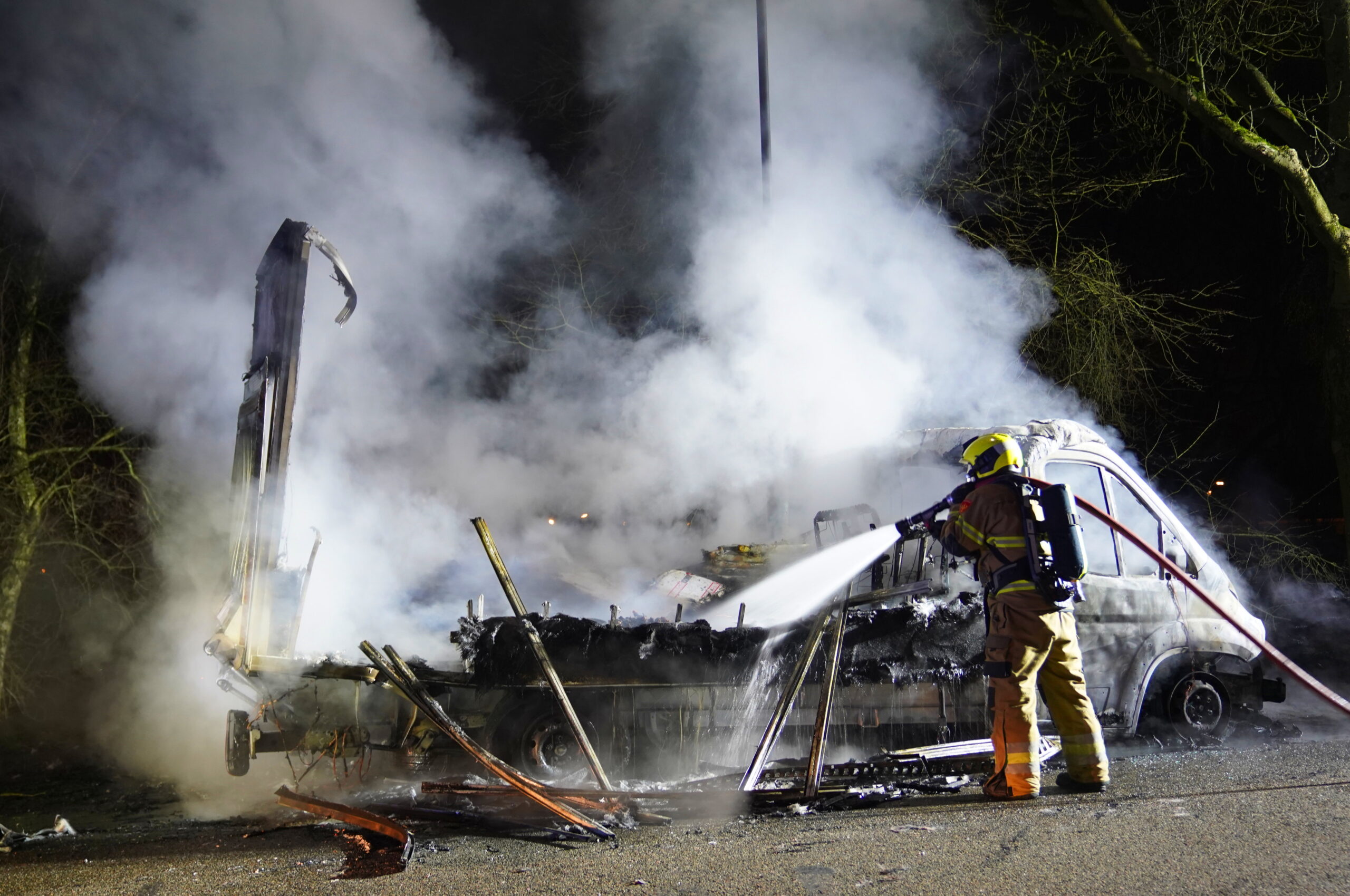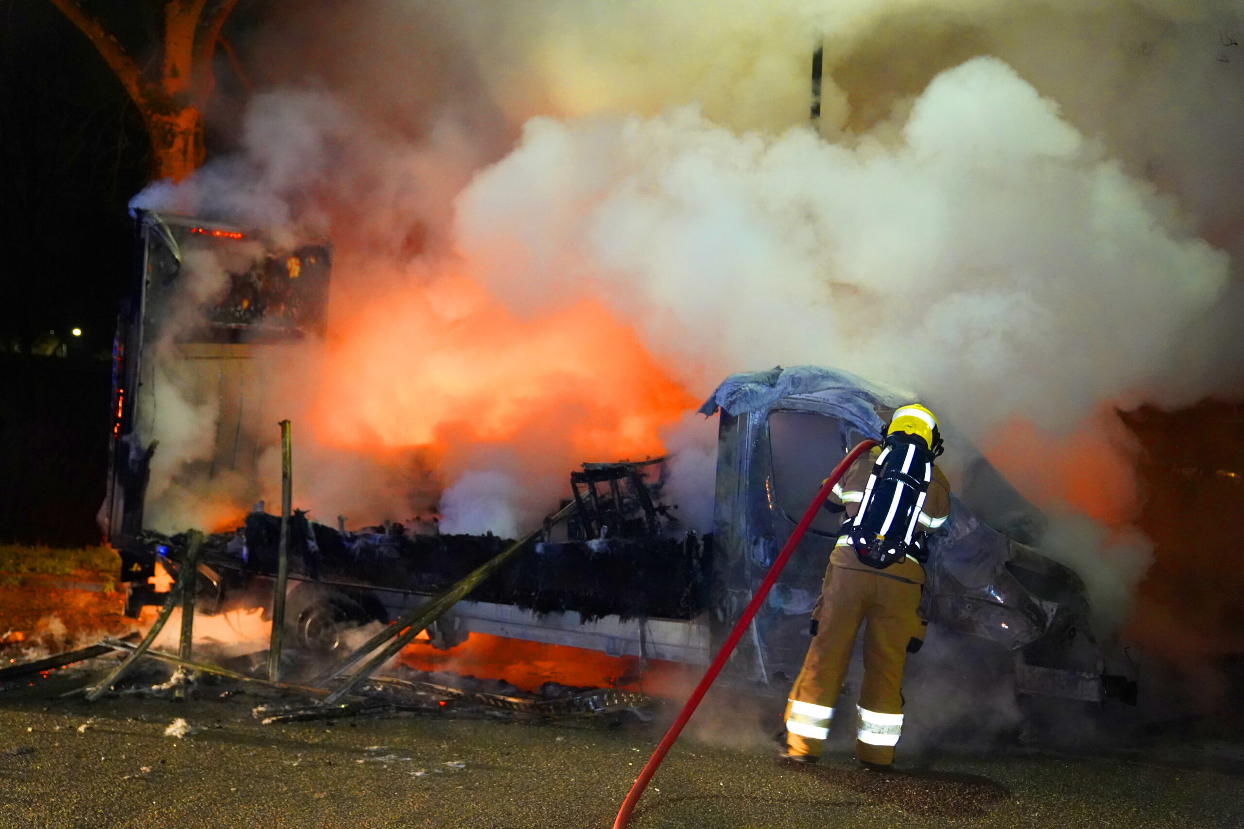 Vrachtwagen uitgebrand, politie onderzoekt brandstichting