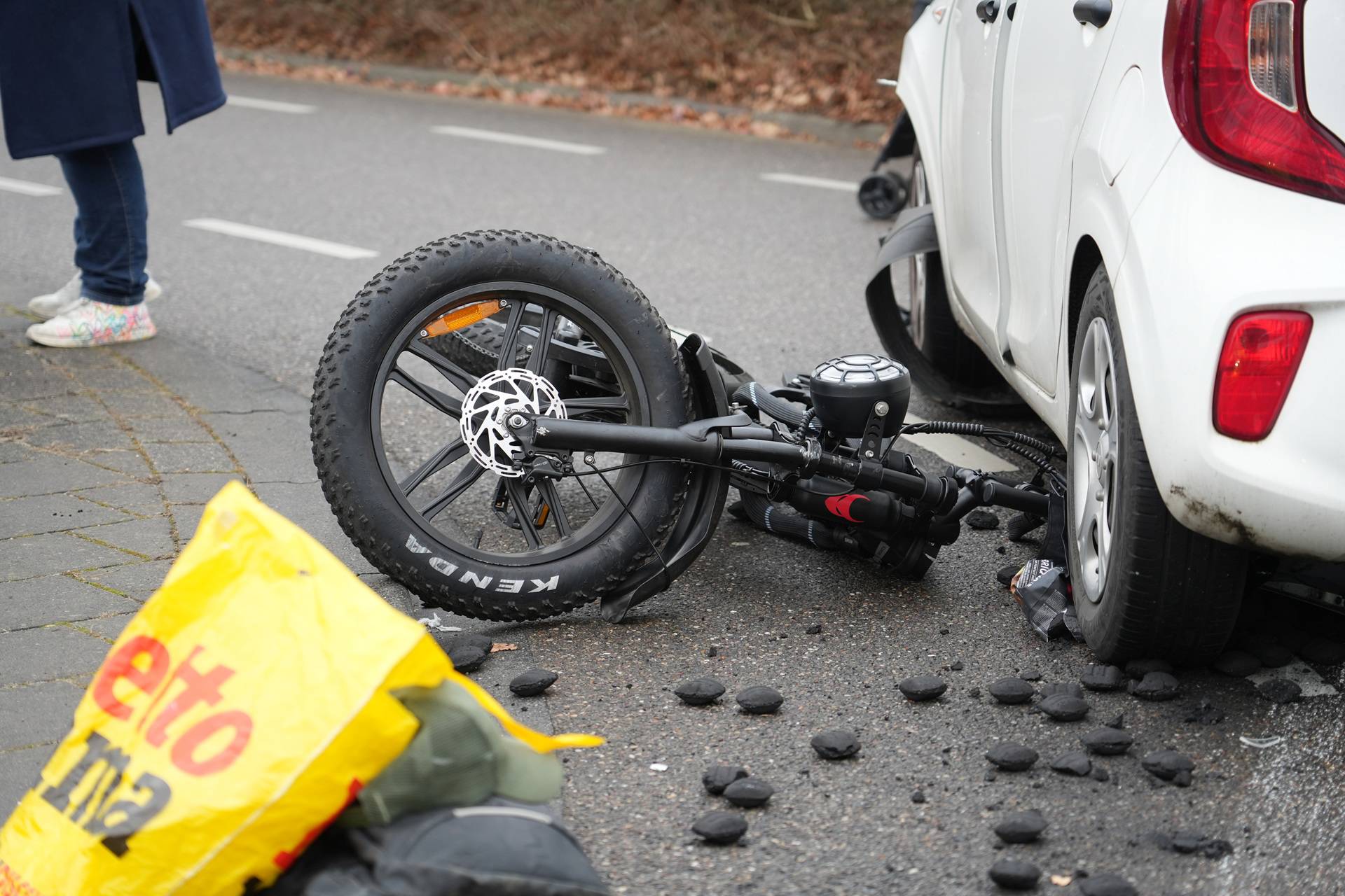 De bestuurder van de fatbike raakte bij het ongeluk gewond, onder meer aan zijn hoofd. Zijn voertuig kwam deels onder de auto terecht. De automobiliste bleef ongedeerd.