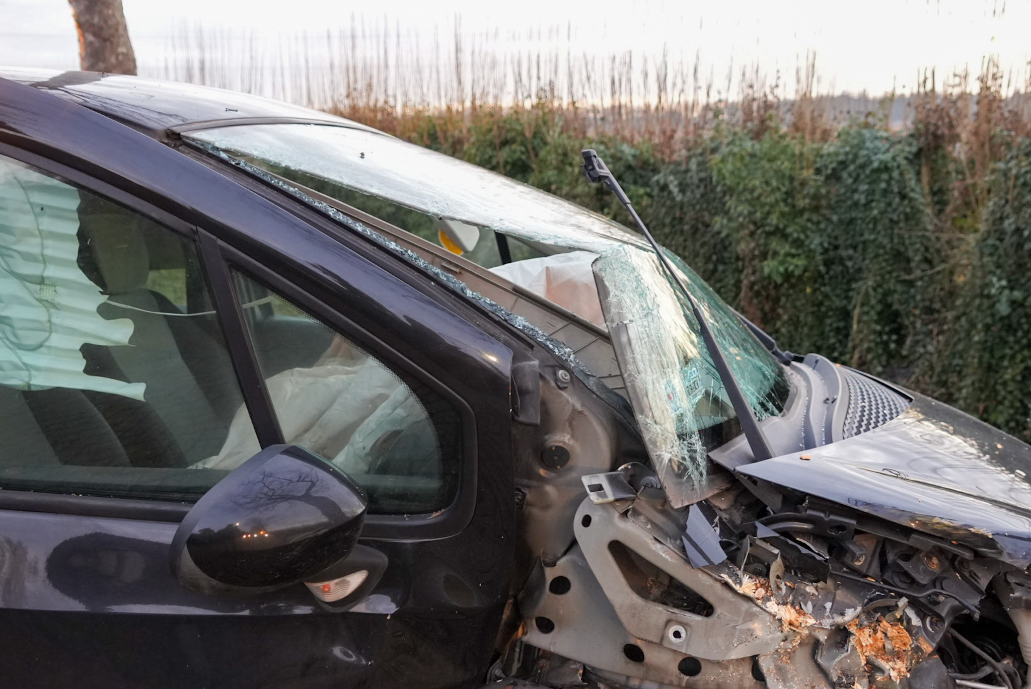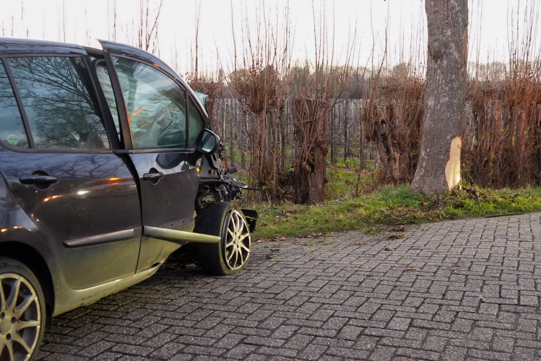 Auto botst tegen boom, bestuurder meegenomen naar politiebureau