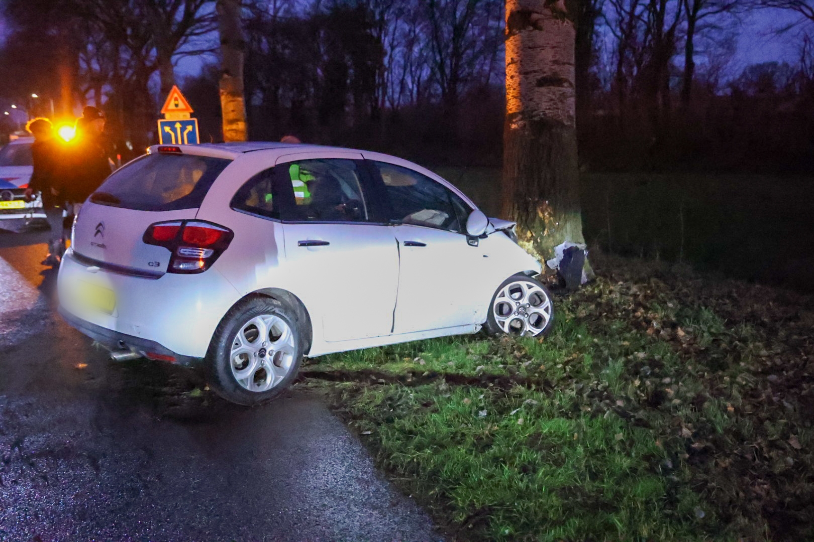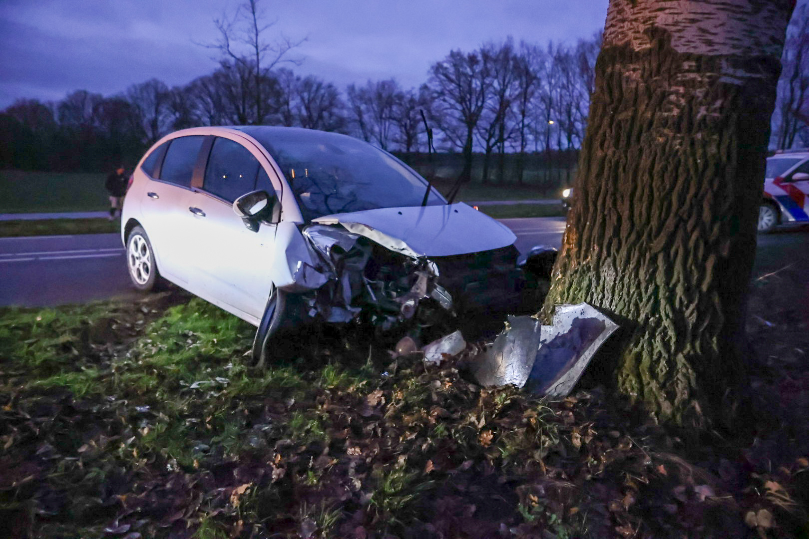 Oudere automobiliste botst tegen boom, auto zwaar beschadigd