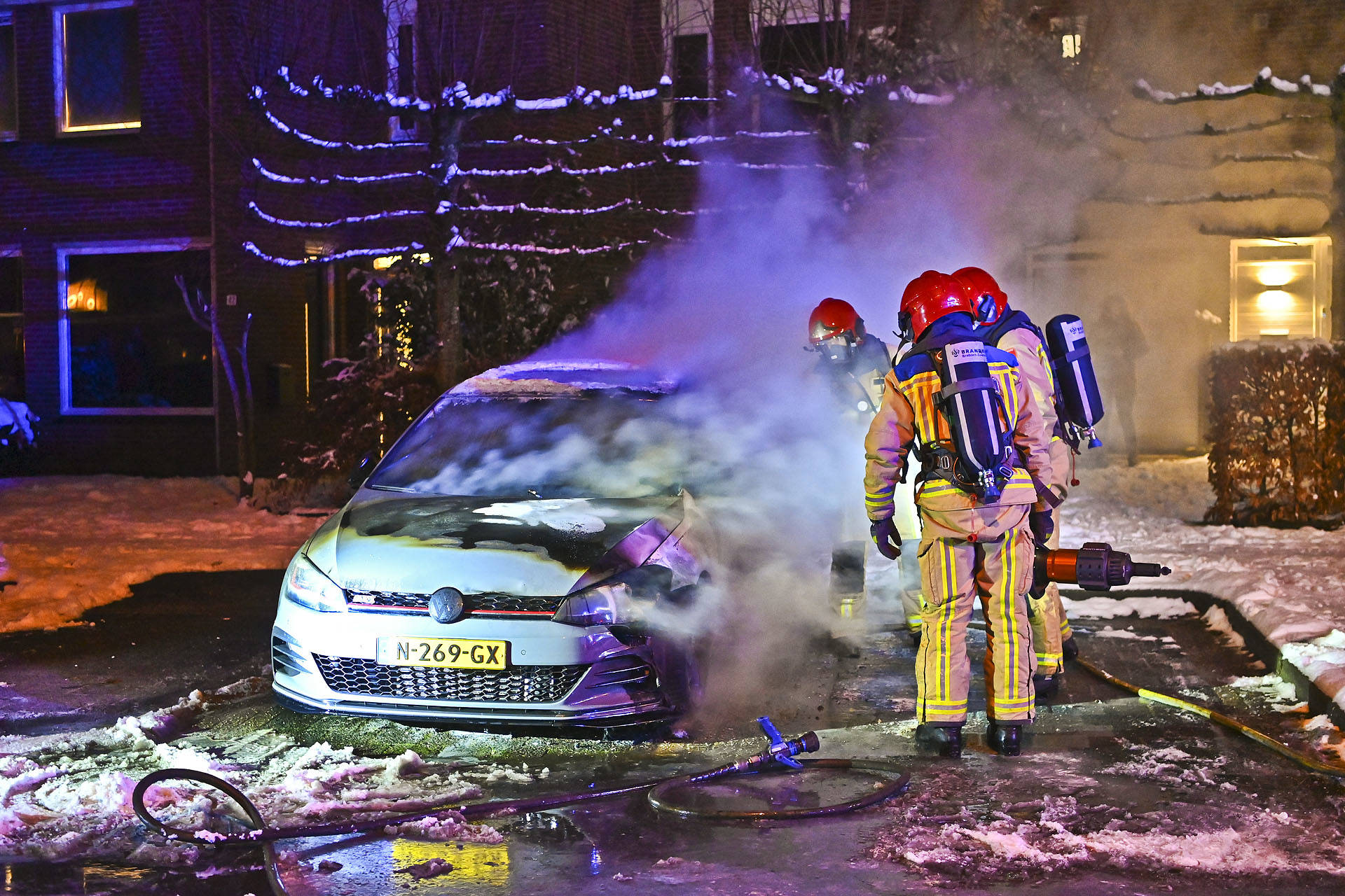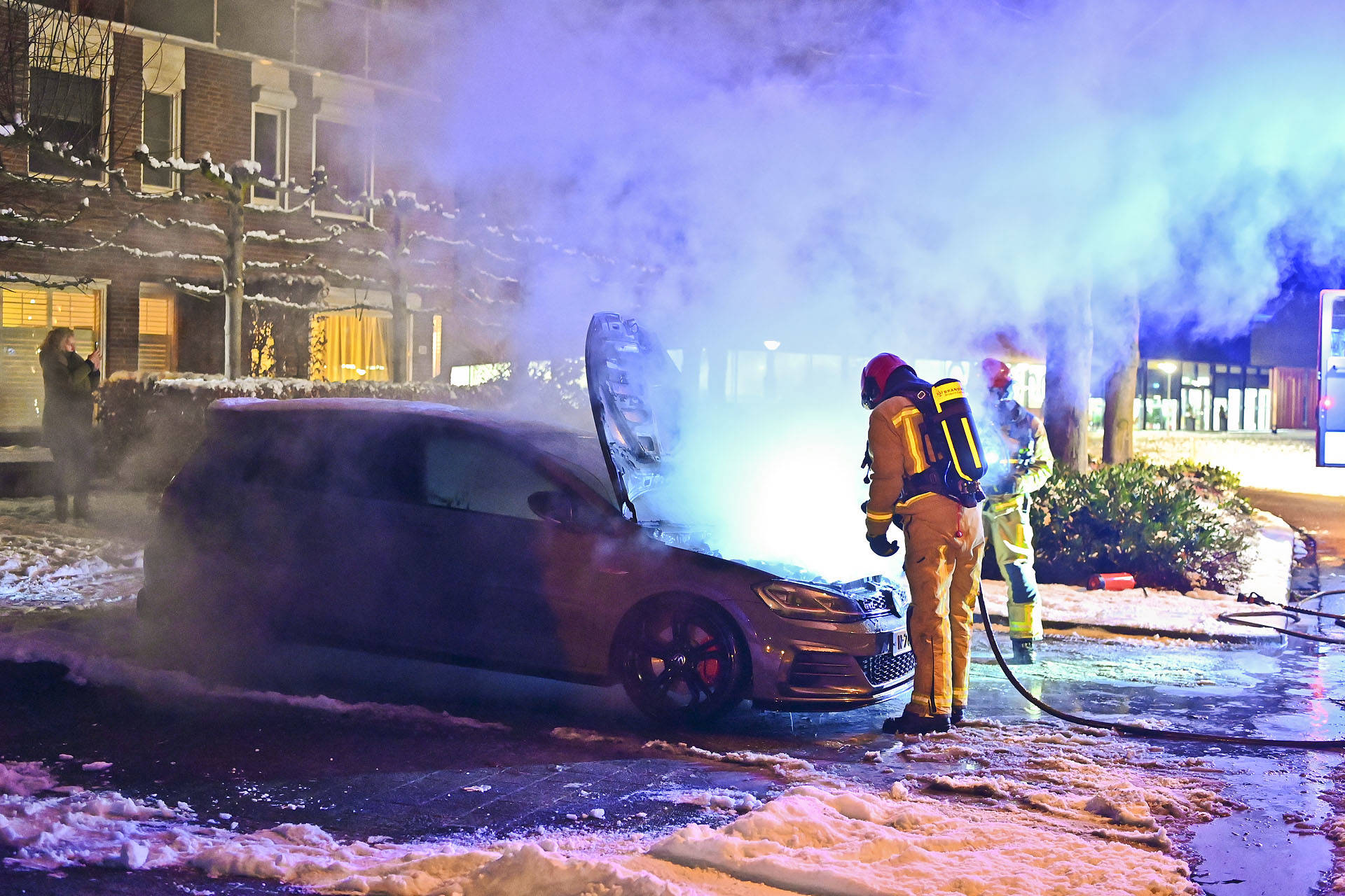 Brandweer blust brandende personenauto