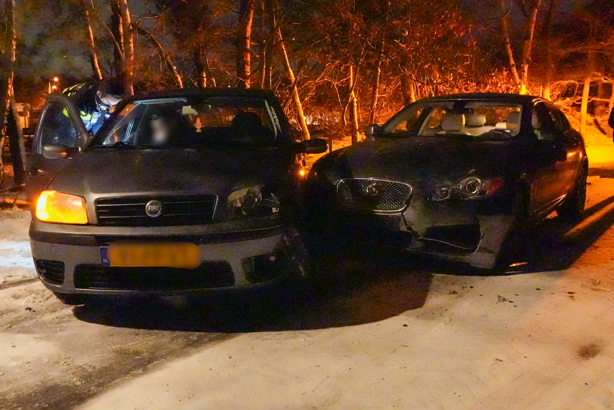 Auto’s botsen door gladheid in bocht