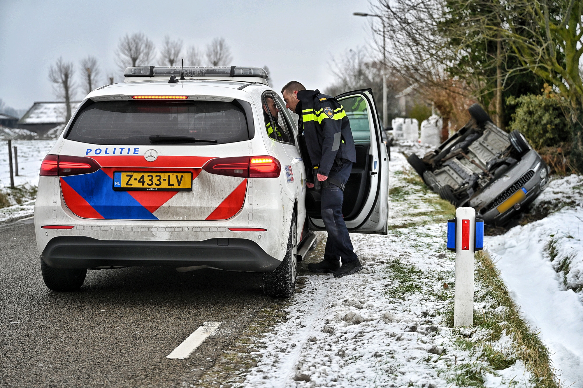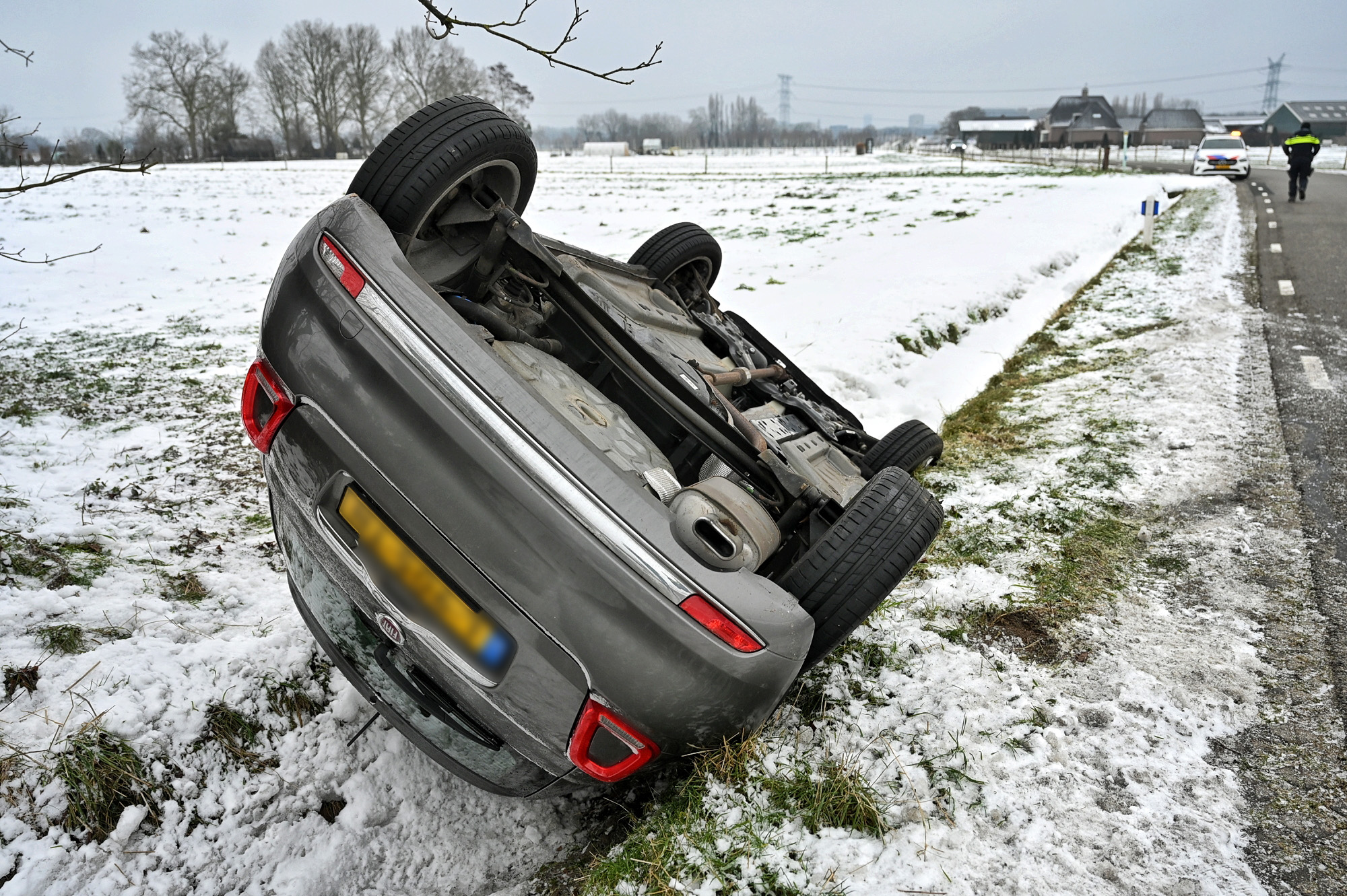 Auto belandt door gladheid ondersteboven in sloot