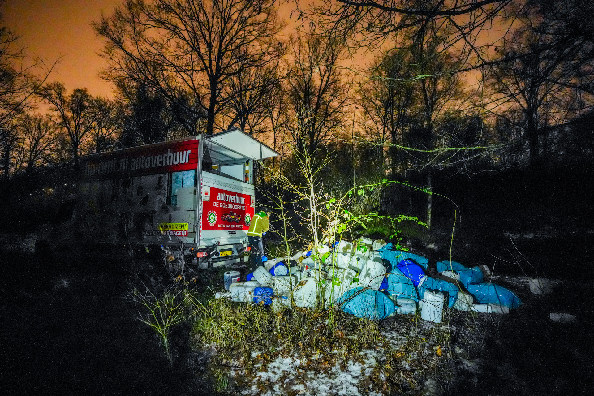 Bakwagen vol drugsafval rijdt zich vast, daders op de vlucht