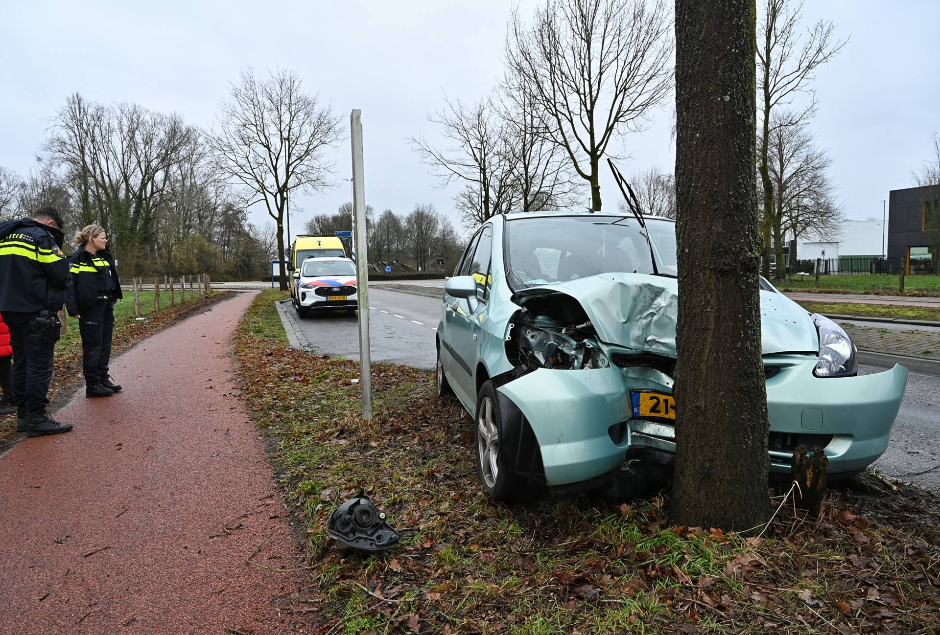 Politie en ambulance kwamen met spoed ter plaatse. De bestuurder is ter plekke nagekeken, en de auto raakte zwaar beschadigd.