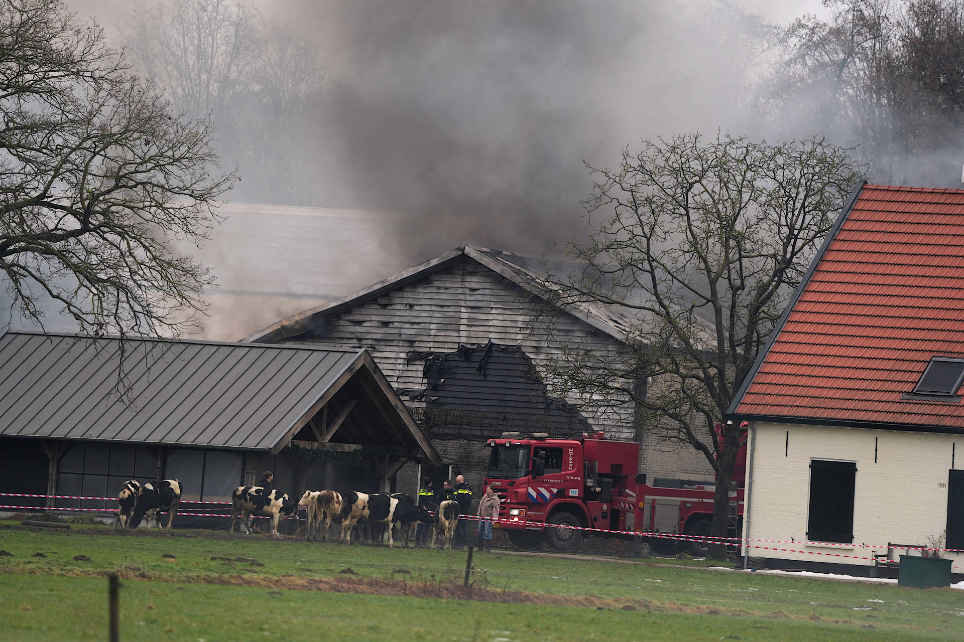 In de stal bevond zich een onbekend aantal koeien, maar het vee is op tijd in veiligheid gebracht. De rook trekt over een nabijgelegen natuurgebied en levert geen overlast op voor omwonenden.