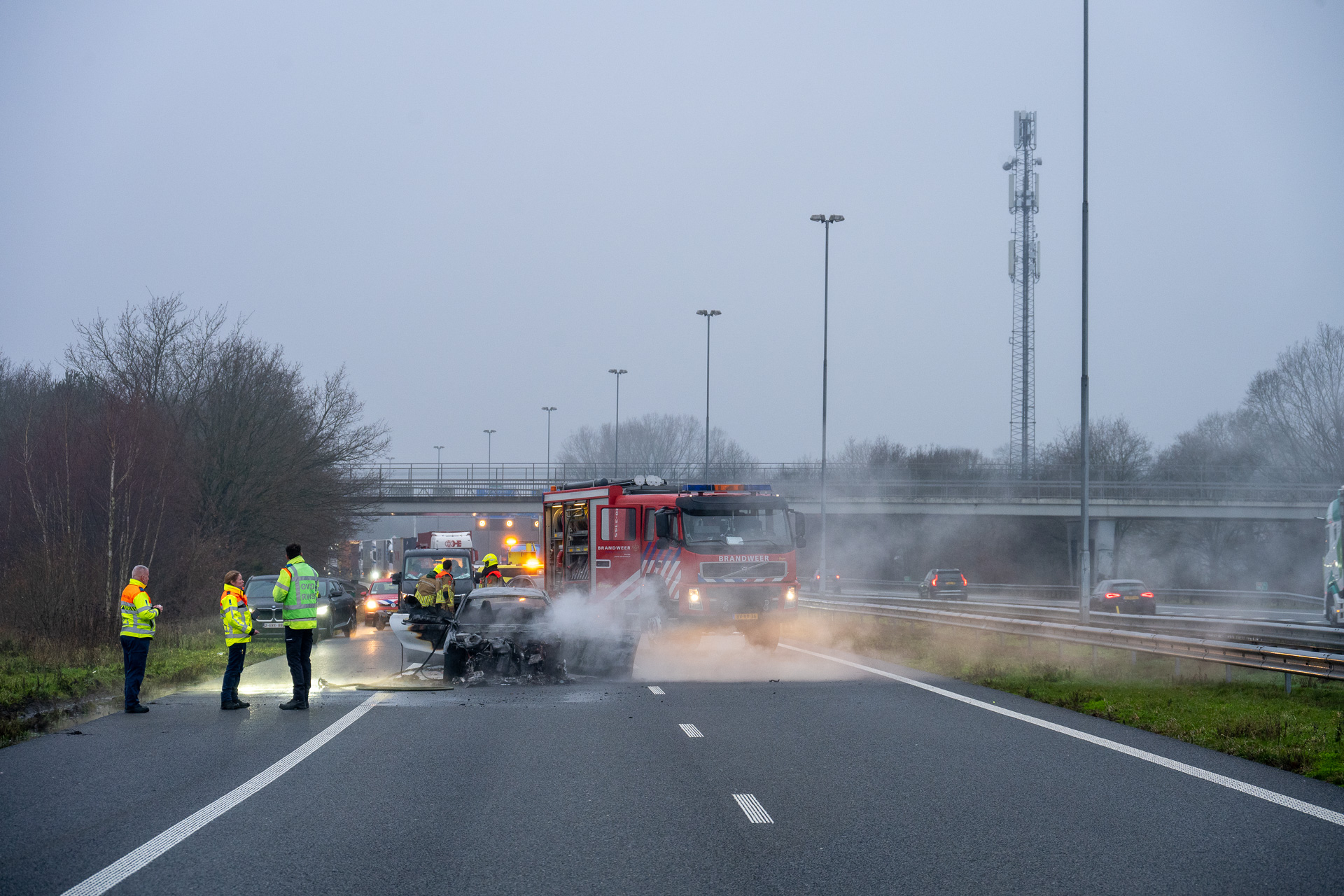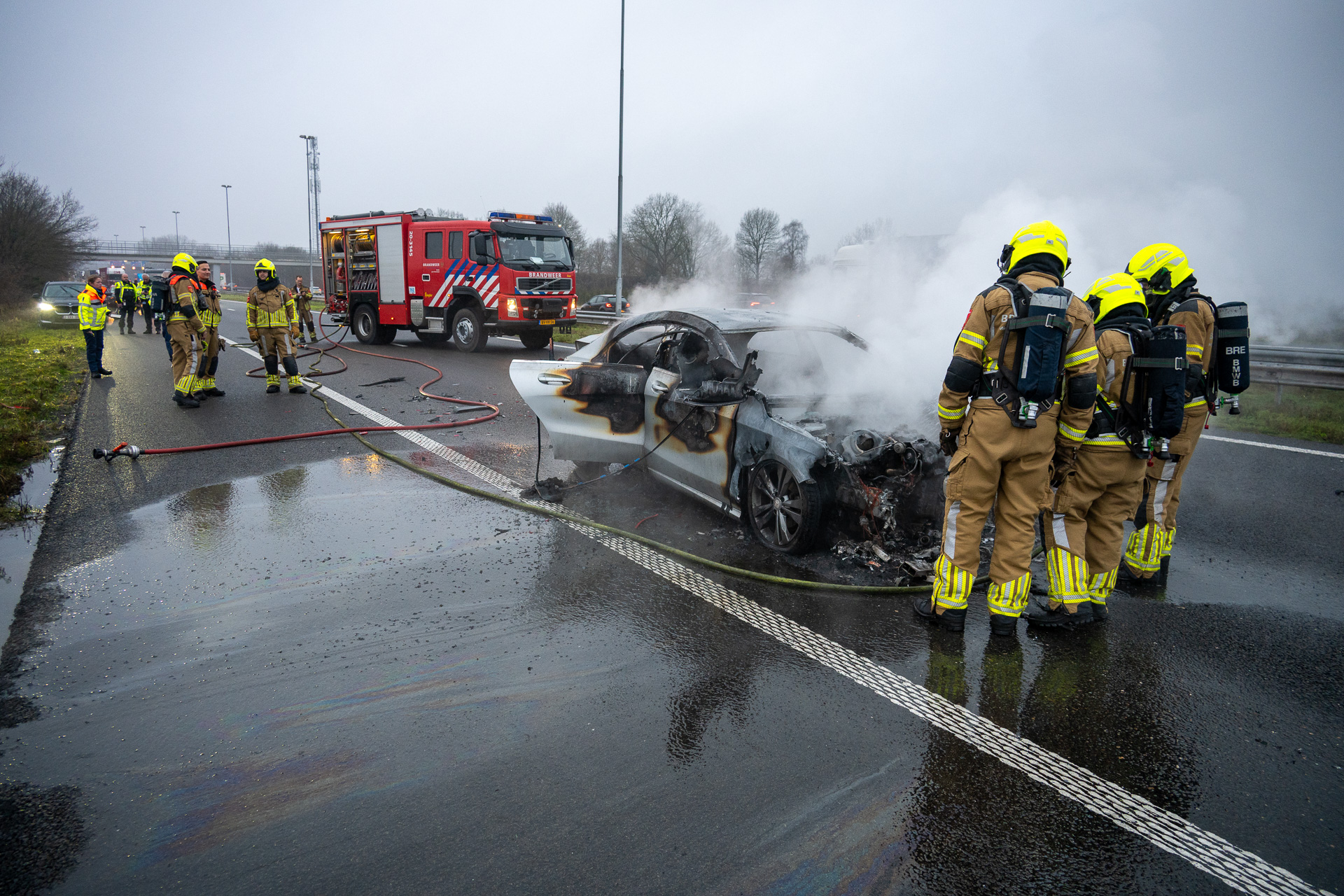 Auto uitgebrand na ongeval met twee vrachtwagens