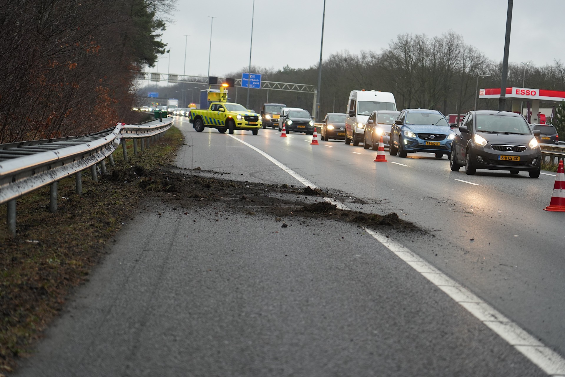 Voor zover bekend raakte niemand gewond bij het incident. Eén rijstrook werd afgesloten, wat leidde tot forse vertraging voor het verkeer in de richting van Breda.
