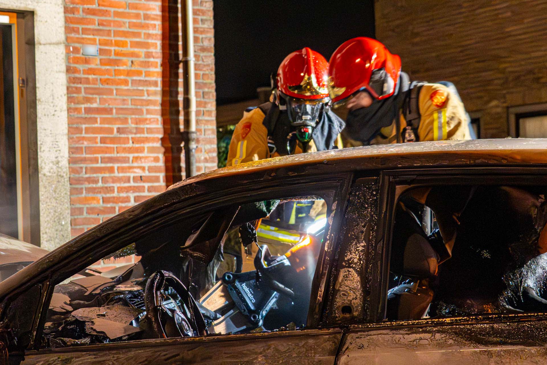 Auto in brand, ramen van woning gesneuveld