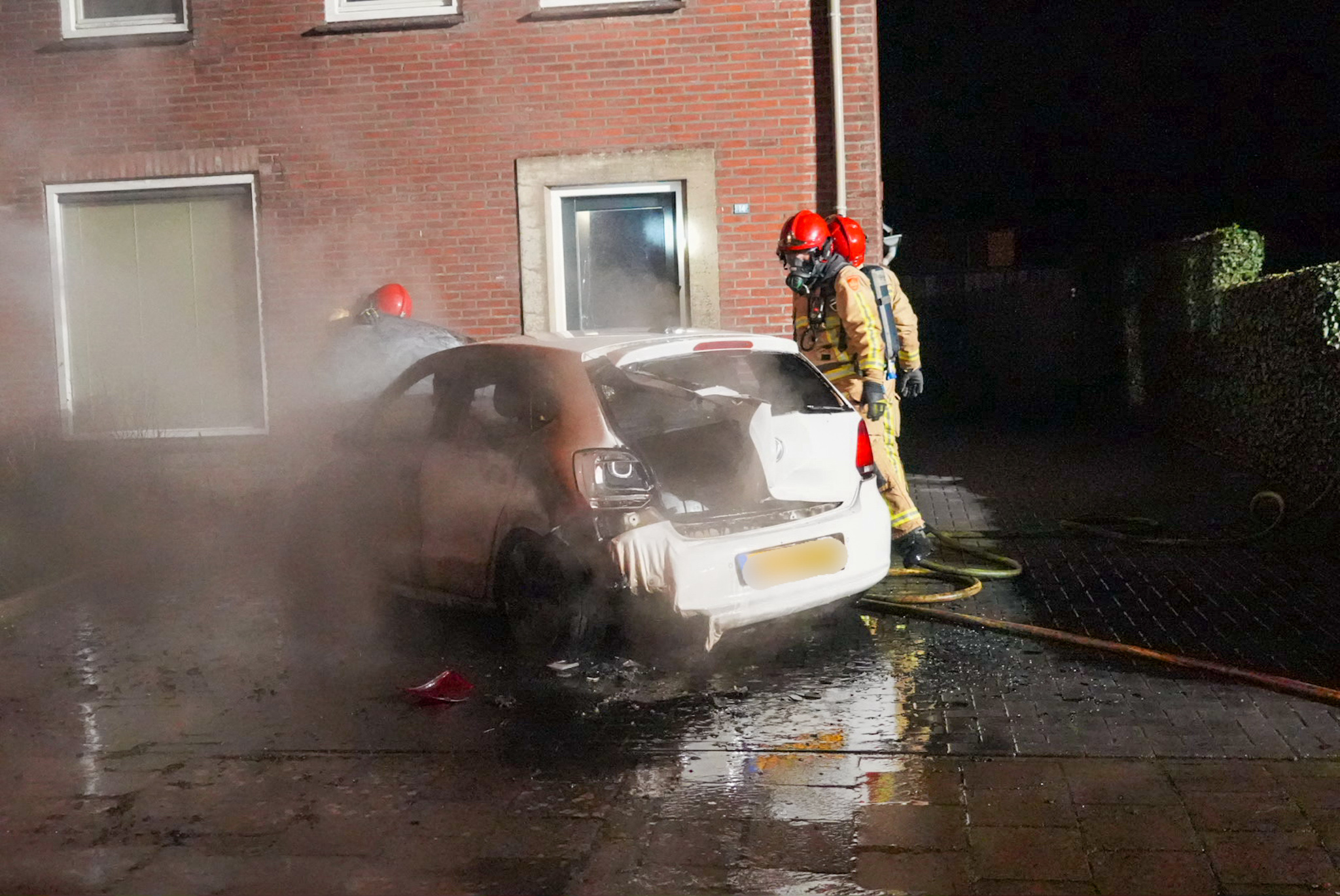 Auto in brand, ramen van woning gesneuveld