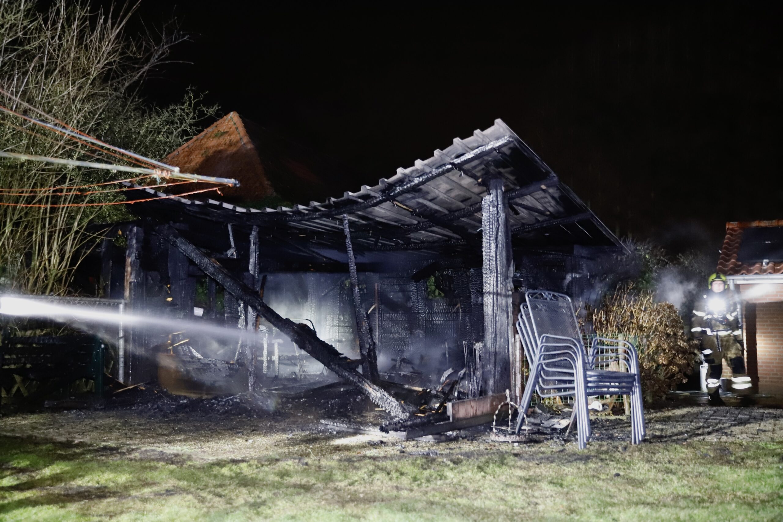 Vanwege de locatie in het buitengebied en de hevigheid van de brand werd ook een waterwagen uit Gennep ingezet. De brandweer had het vuur snel onder controle, maar kon niet voorkomen dat de schuur volledig uitbrandde. In het gebouw lagen vooral tuinspullen opgeslagen.