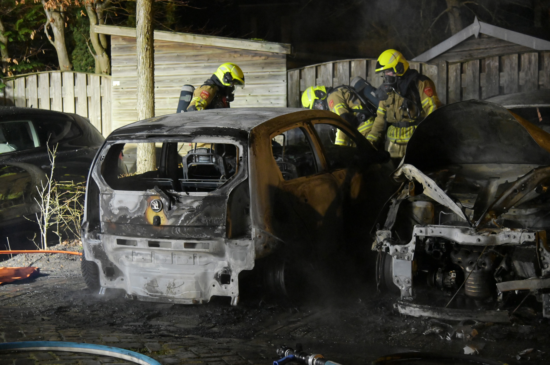 Geparkeerde auto’s volledig uitgebrand