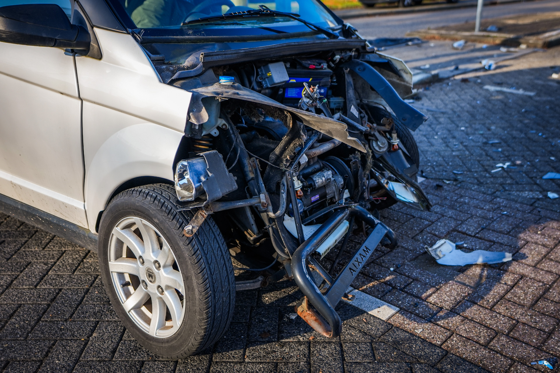Auto kantelt na botsing met brommobiel